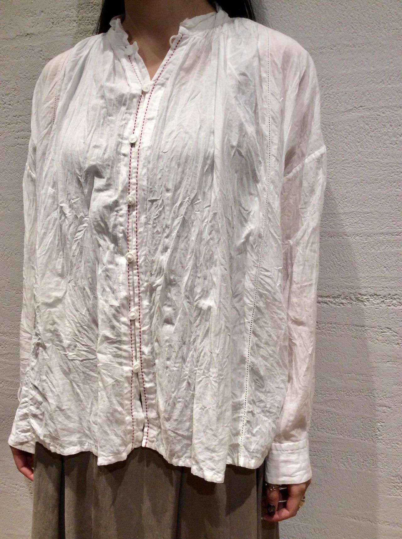 コットンリネンラミーボイルブラウス(着用:ホワイト)