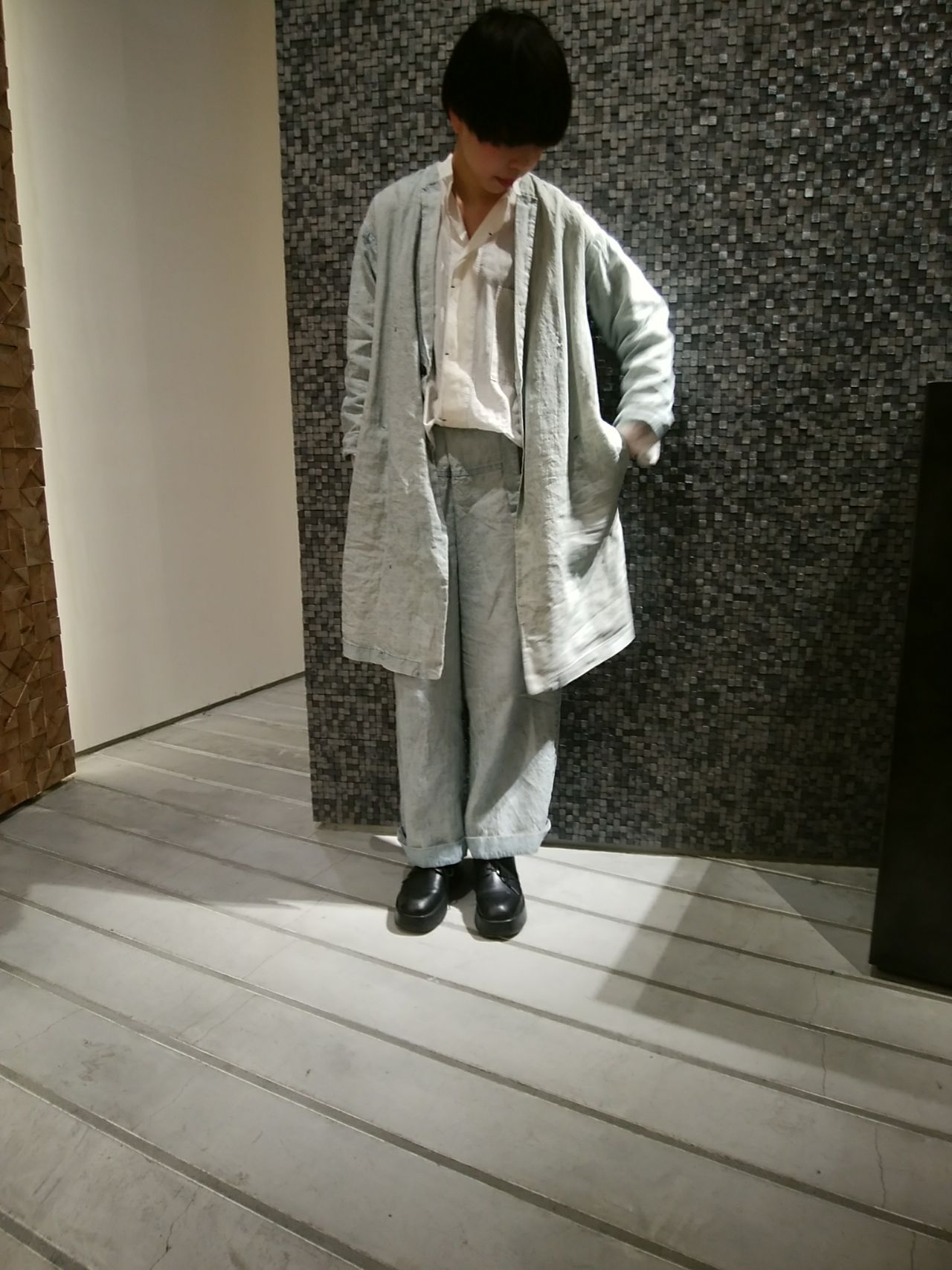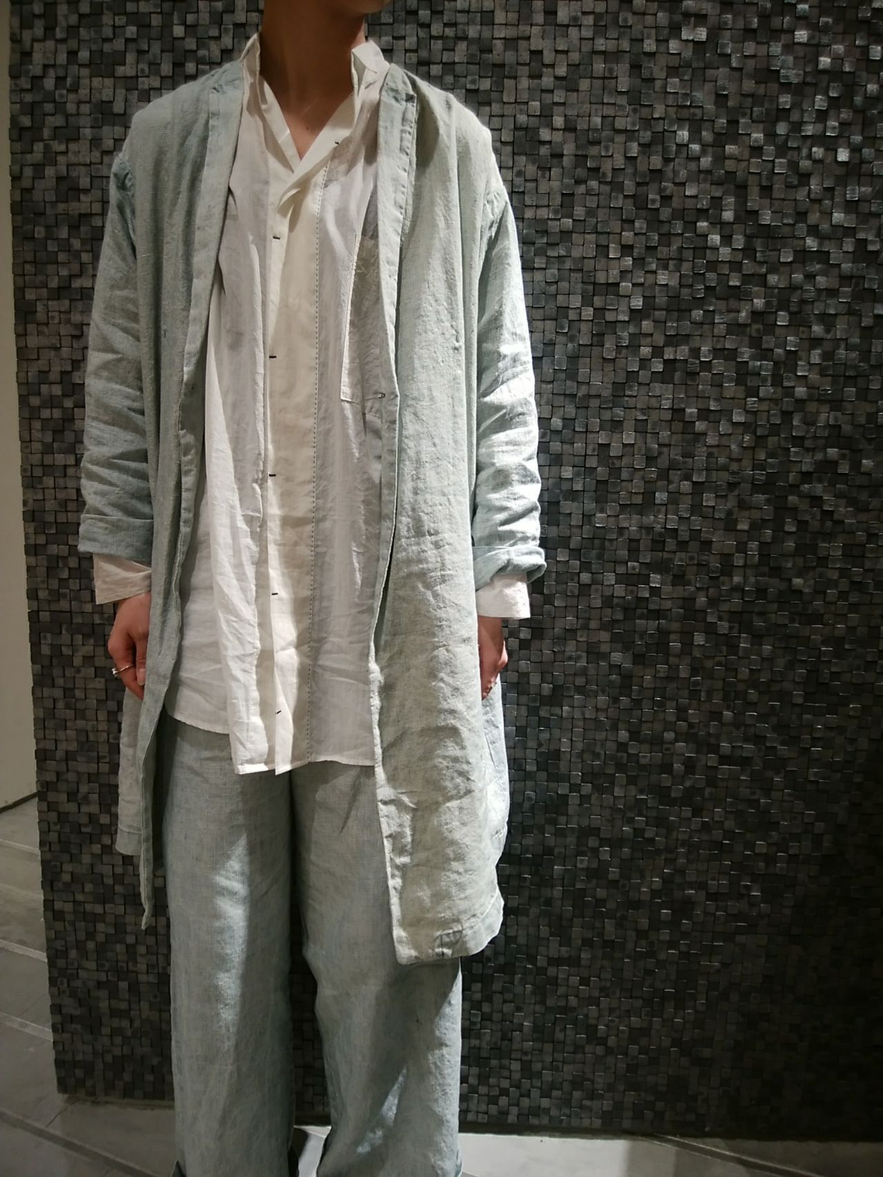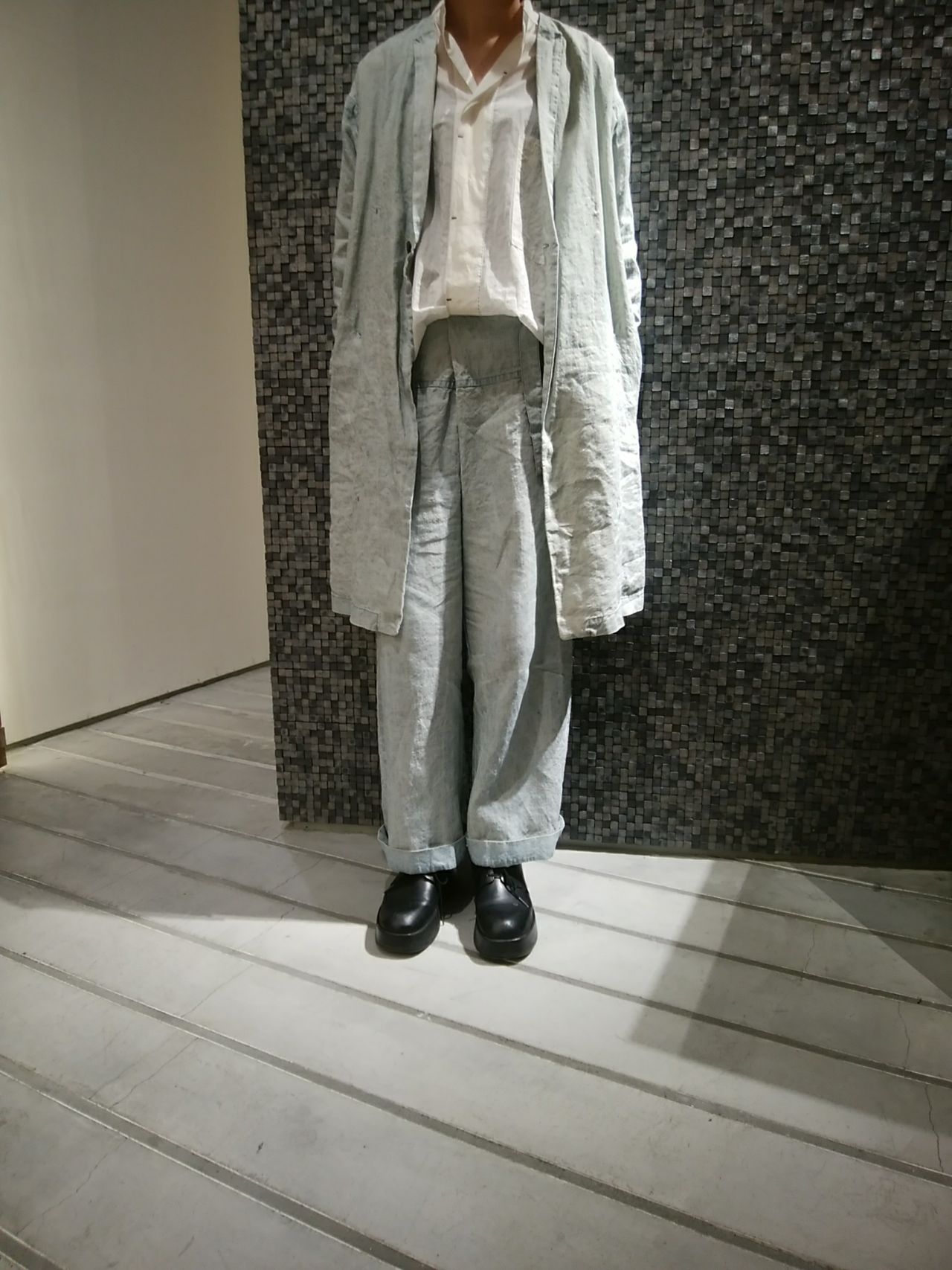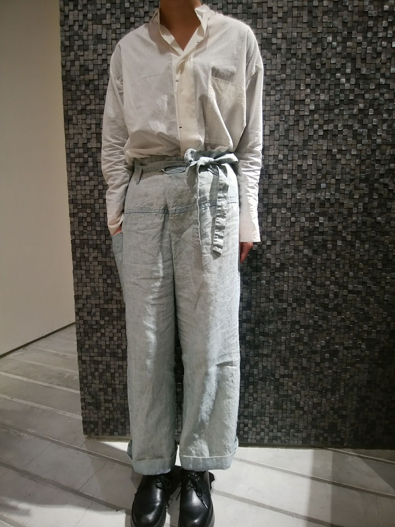 麻のくたっとした素材感とセットアップコーディネートを楽しんで頂きたいです。