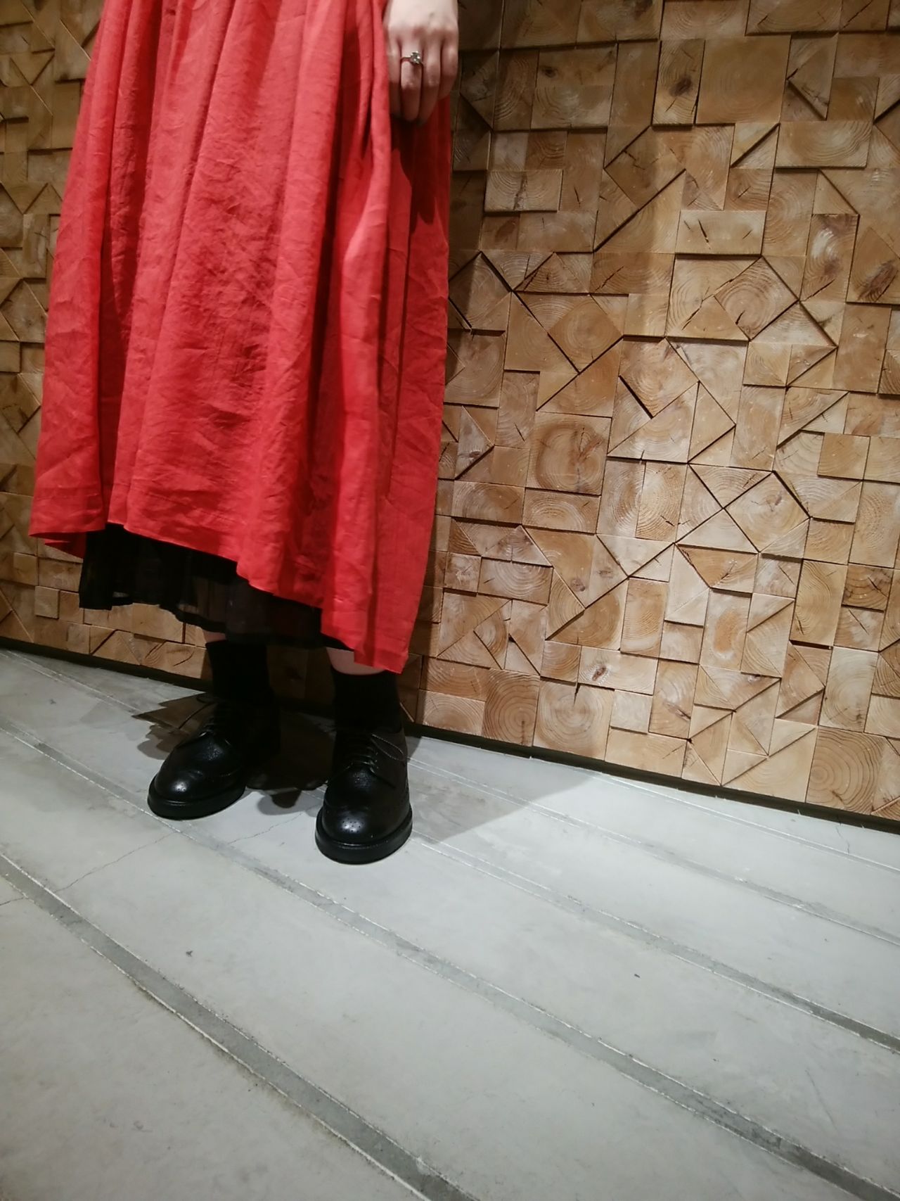 1枚で着てももちろん素敵ですが、スカートをレイヤードしチラッと黒を覗かせて。