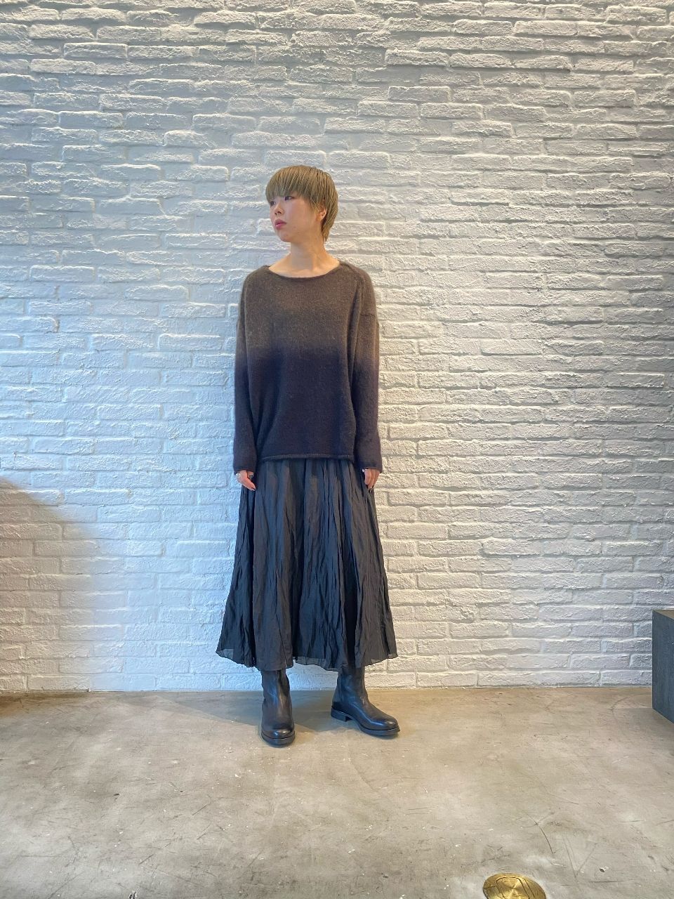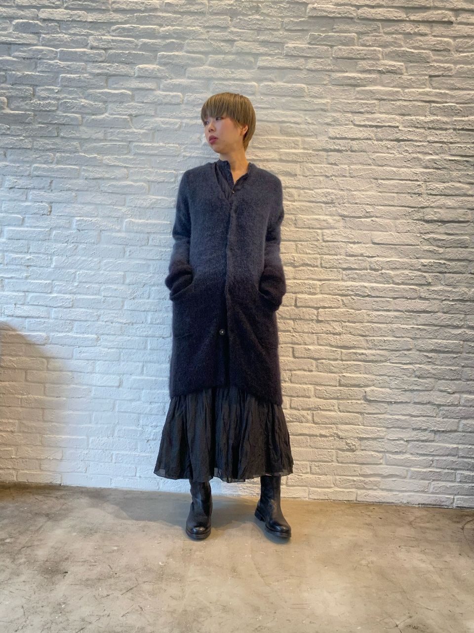 グラデーションの染めが個性的なモヘヤ混のニットやベビーアルパカの柔らかいニットなど、