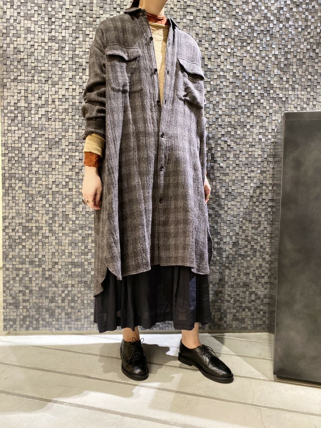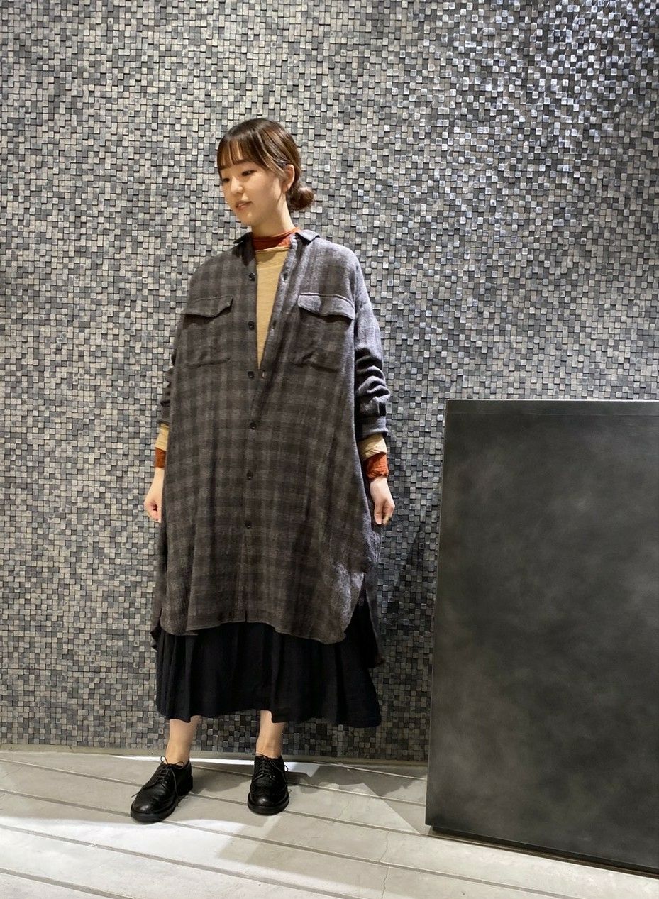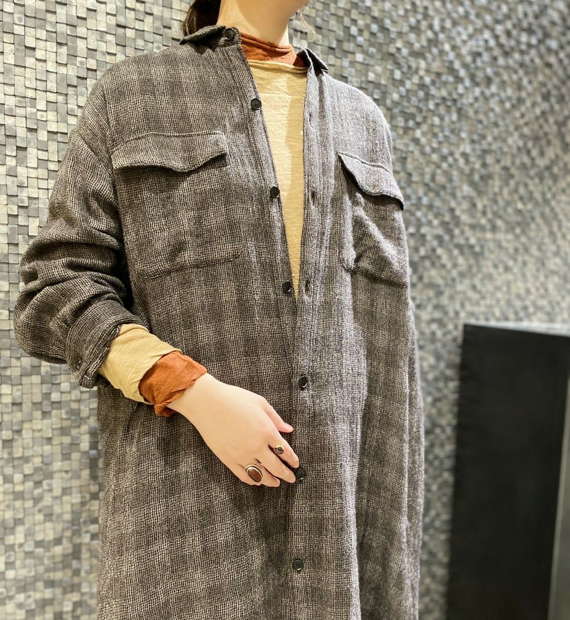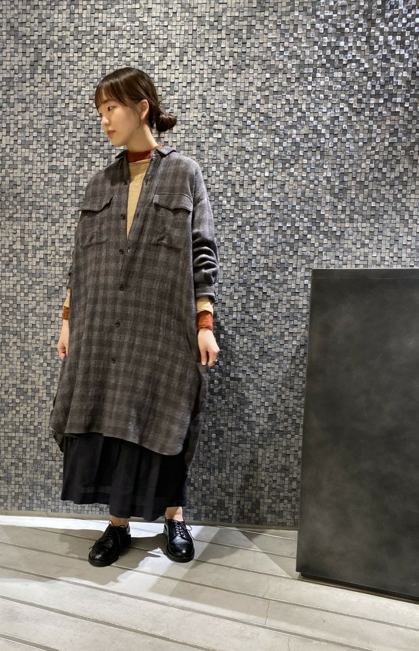 シャツワンピースのインに着るのもこれから冬に向けてのオススメコーディネートです。