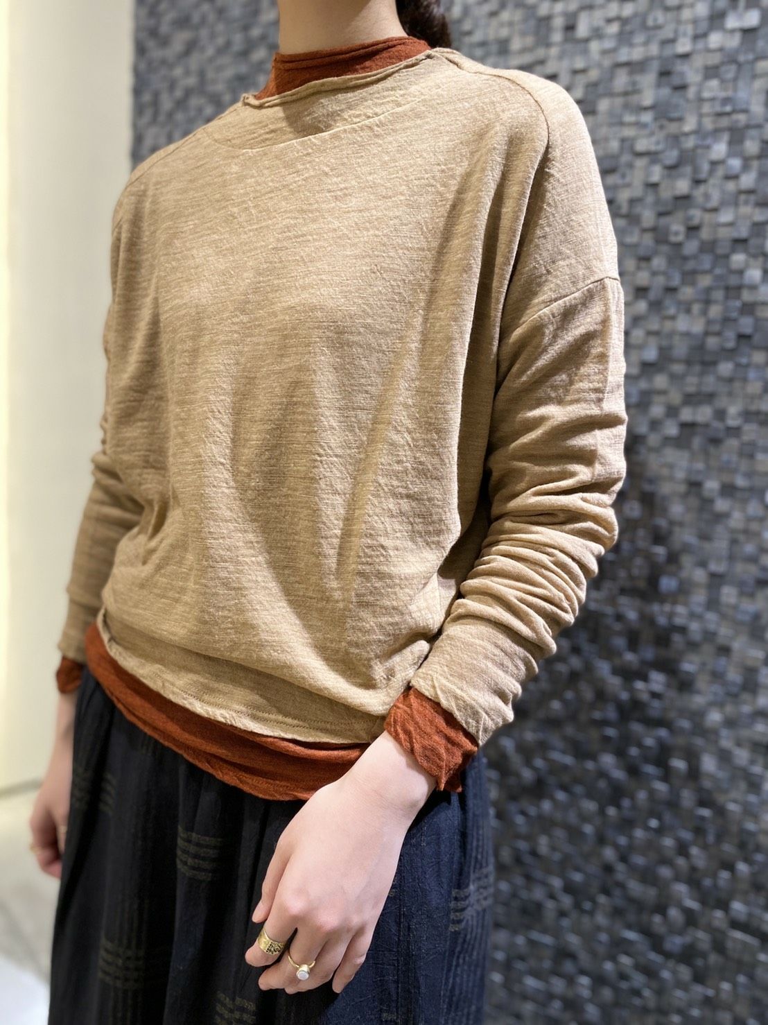 パドカレでは定番のウールガーゼのプルオーバーを使ったコーディネートです。
