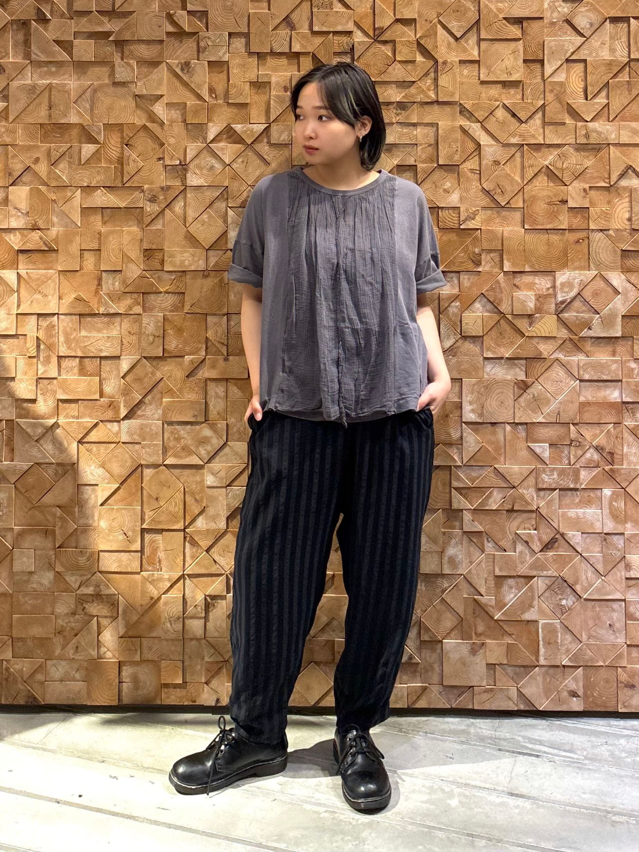 たっぷりしたTシャツの前面に、柔らかな楊柳素材をのせました。