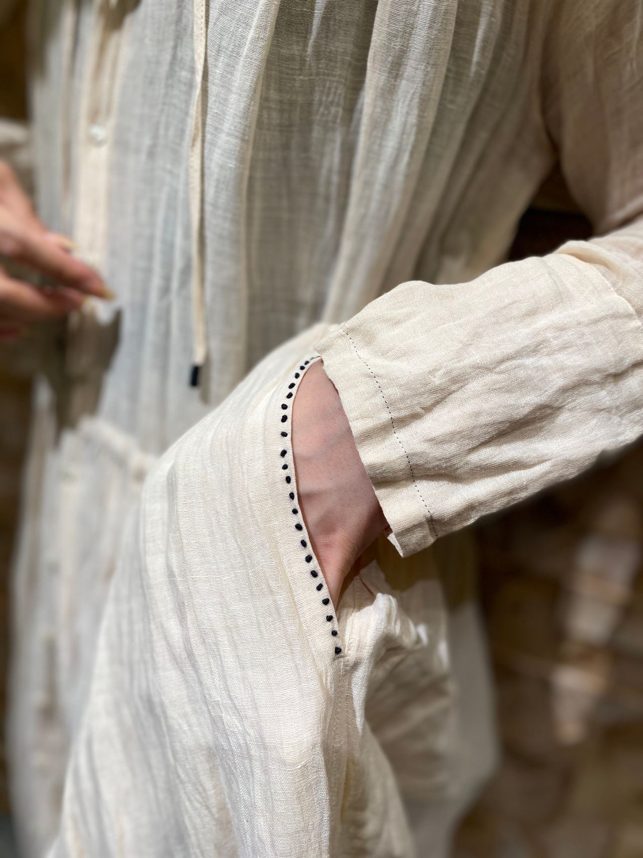 シャリ感があり冷ややかな肌触りで、着るほどに肌に馴染み柔らかくなります。