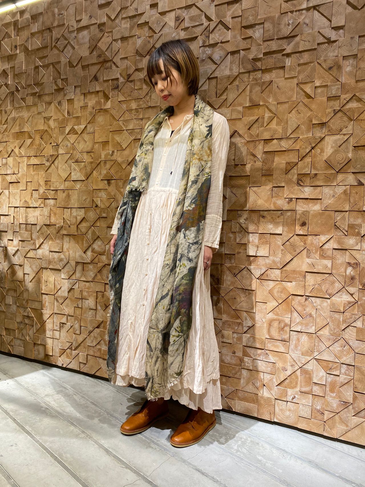 扱っている店舗が限られているファリエロサルティのアースカラーのストールと合わせて、秋らしさを演出してみました。