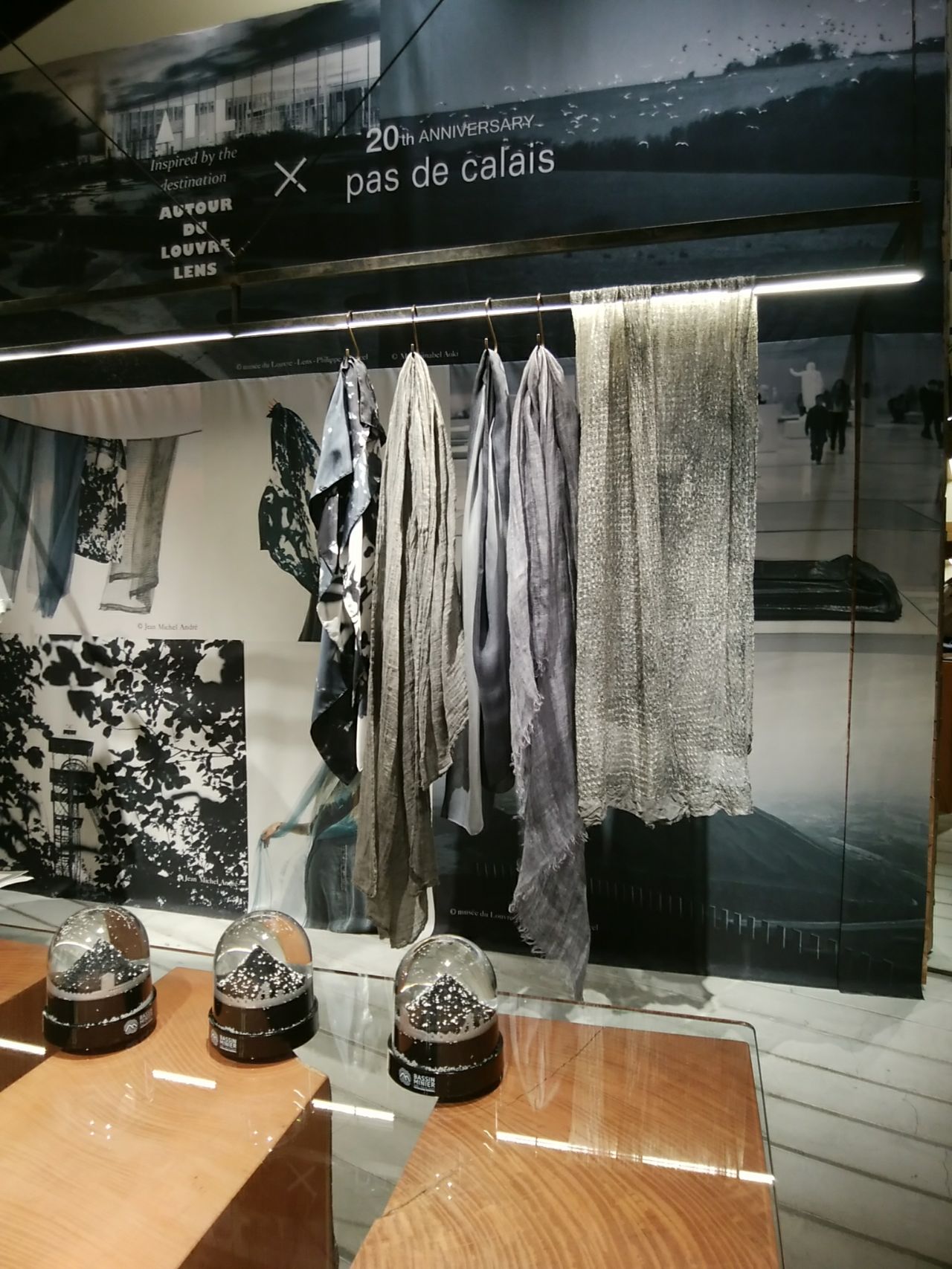 ルーブル美術館ランス別館別注ストールの期間限定販売と店内装飾も明日が最終日です。