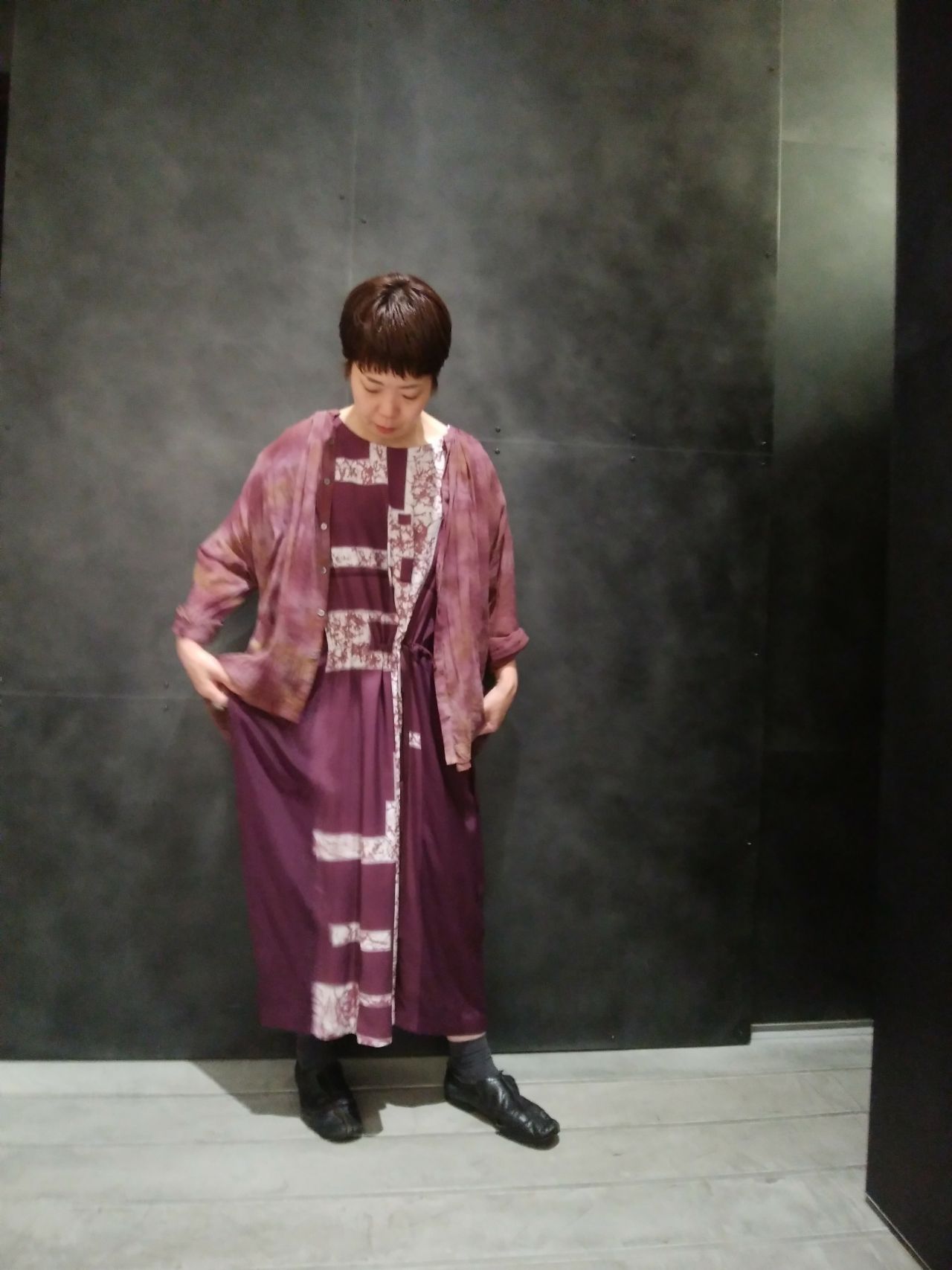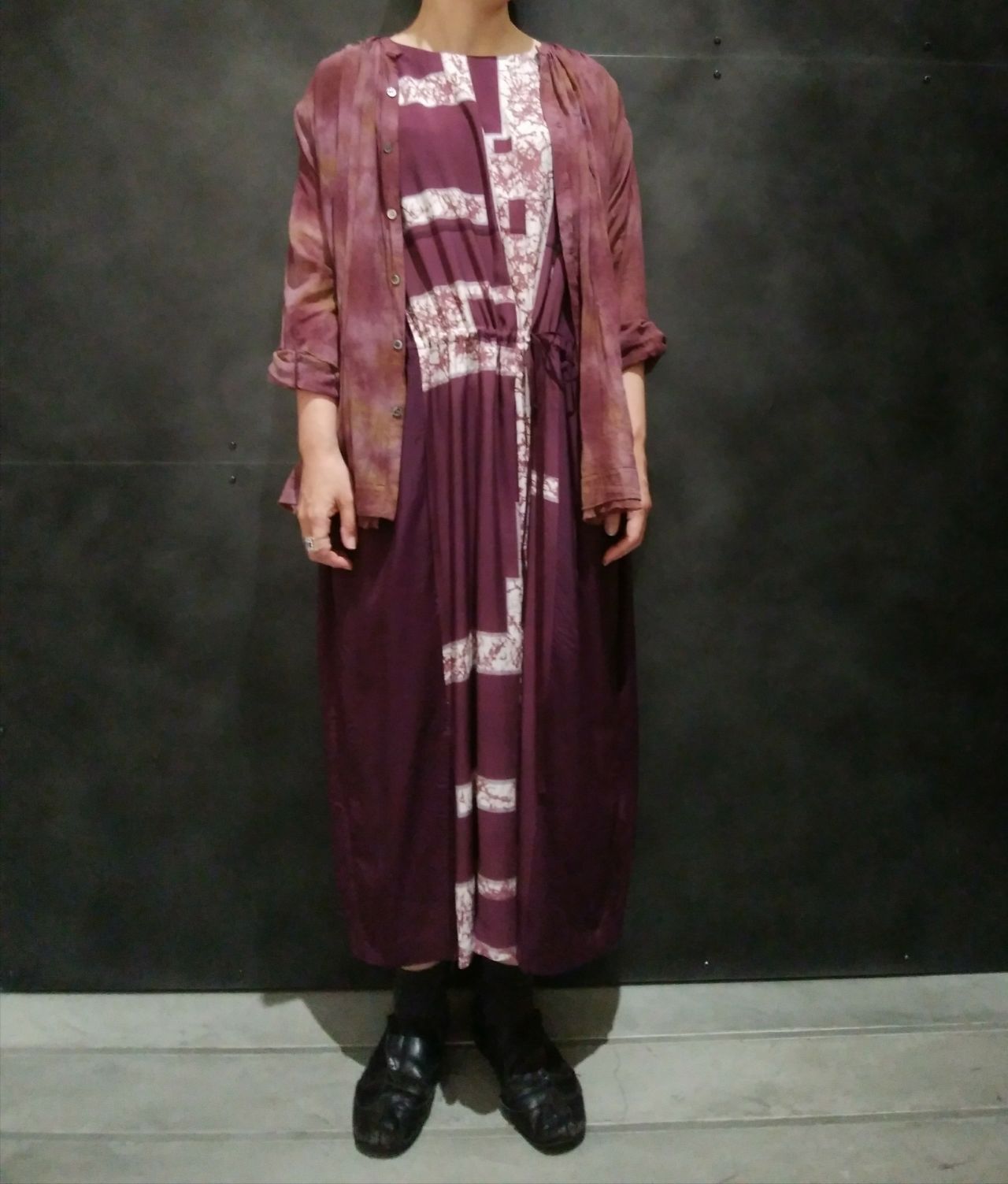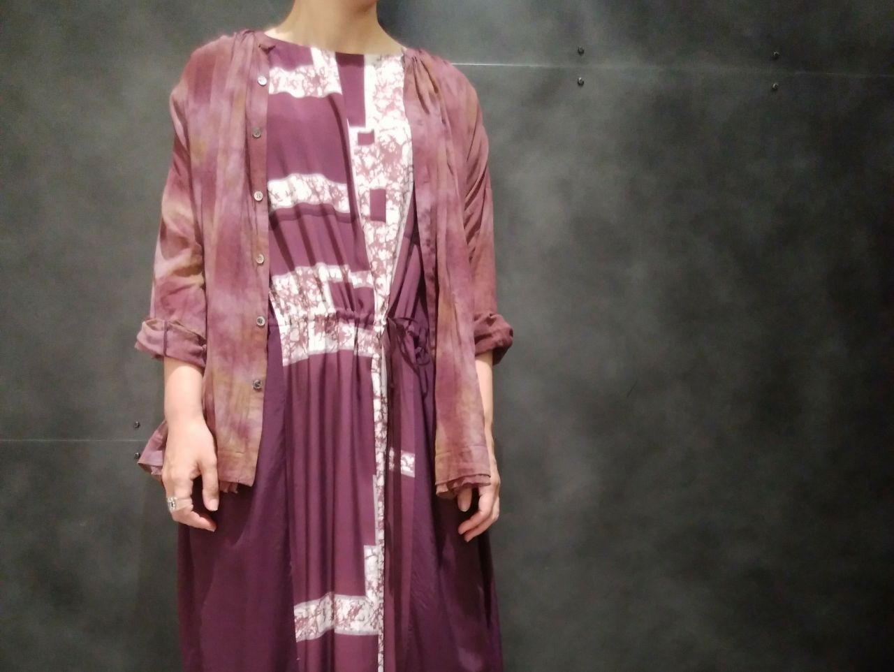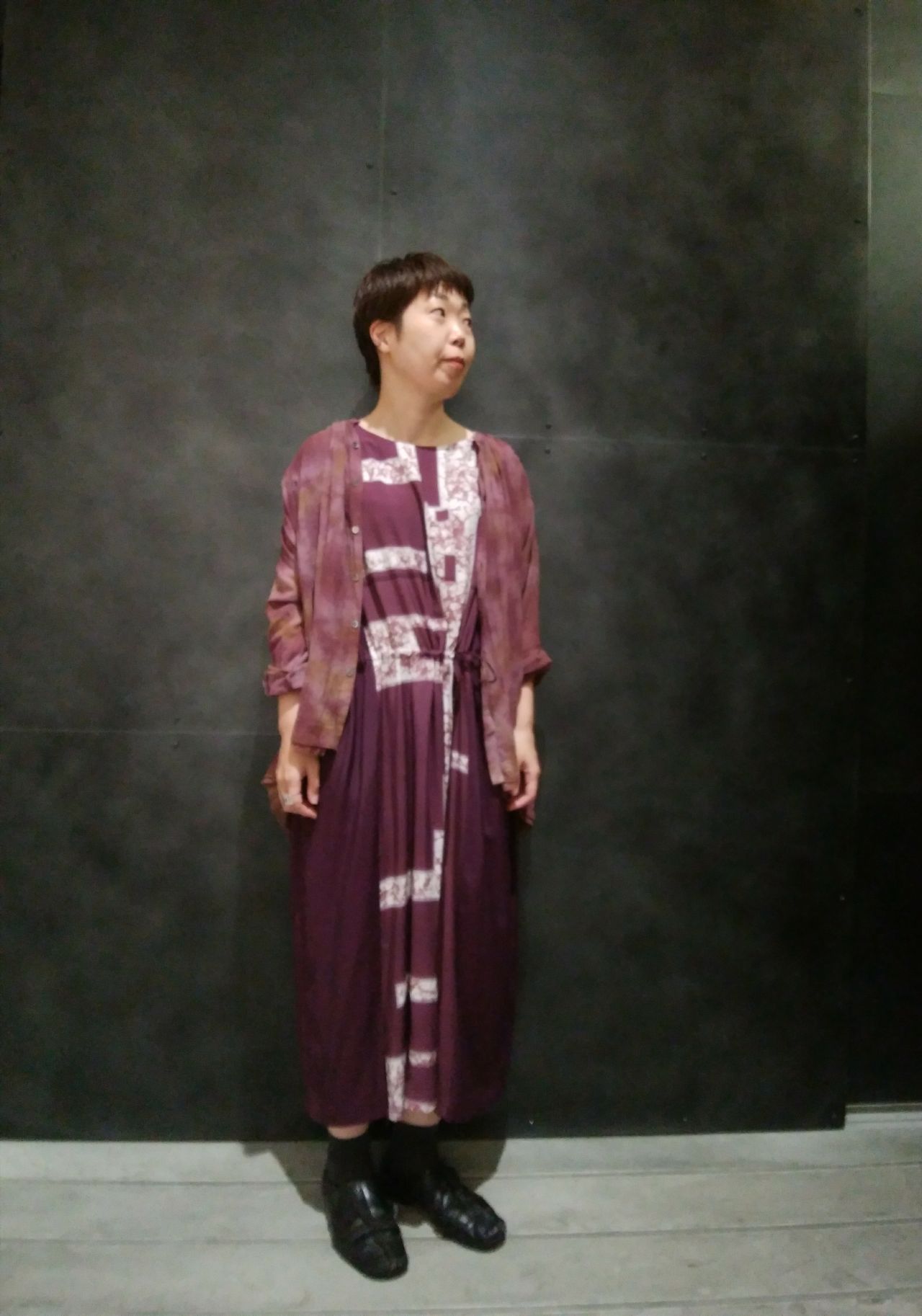 秋らしいボルドーカラーを使ったワントーンコーディネートに。
