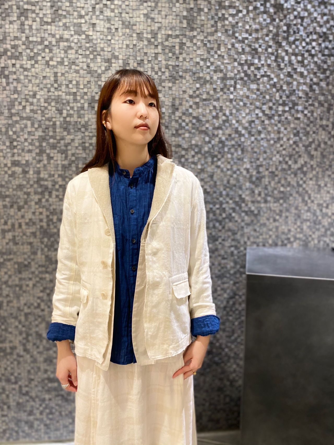 私は普段青色は着ないのですが