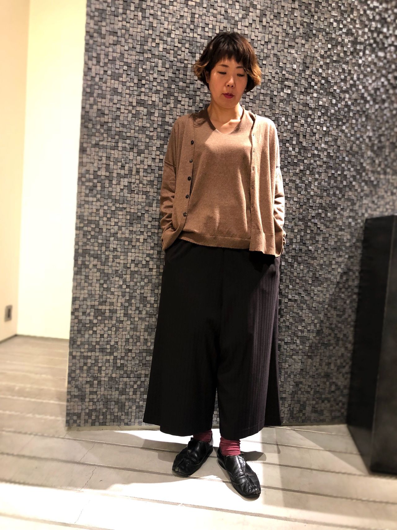 ニットは綿カシミヤ素材で厚手すぎず、重宝します。同シリーズをアンサンブルで。