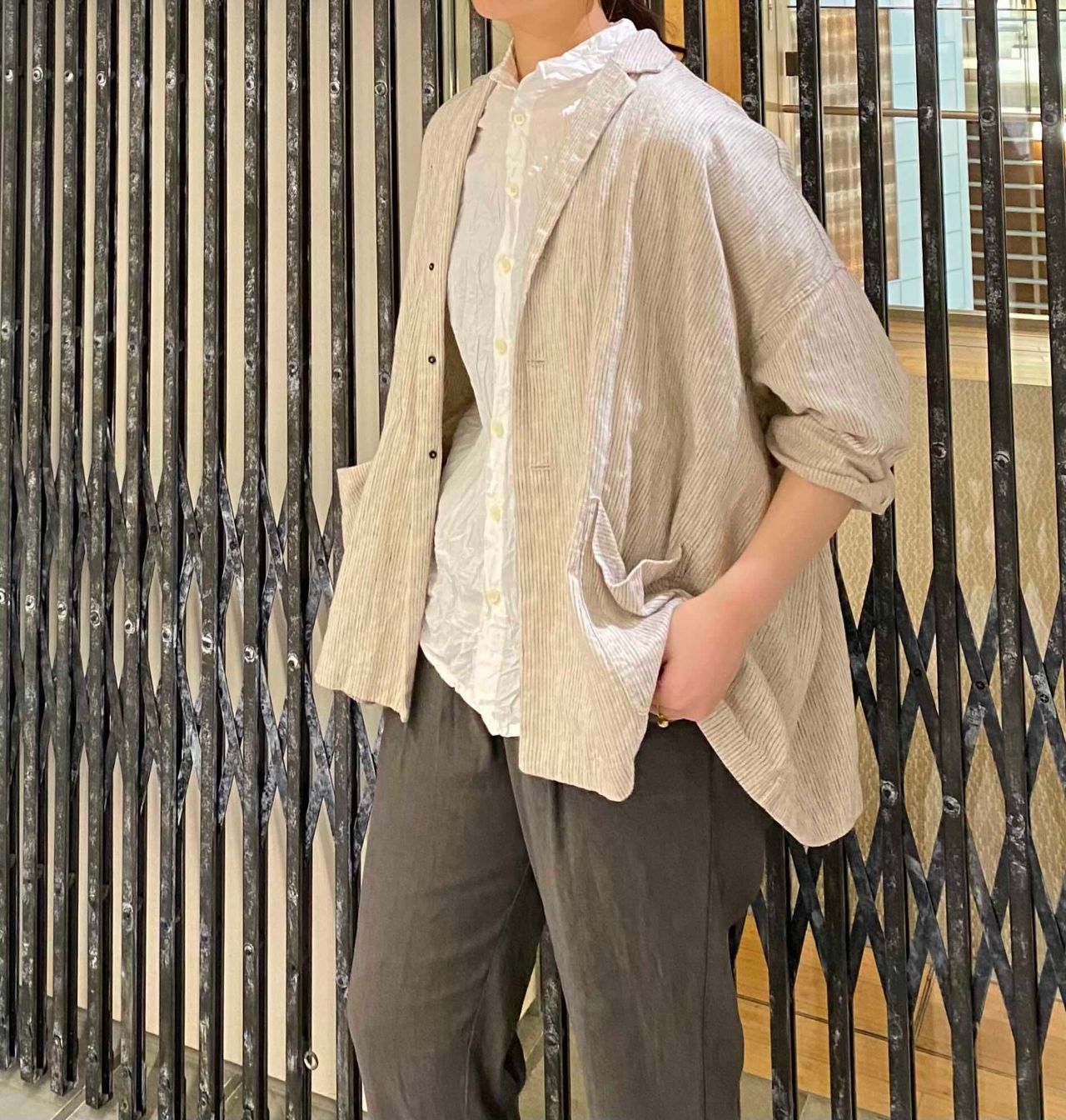 ジャケットは固いイメージがありますがとても軽く、素材感を活かしたくたっとしたシルエットがとても素敵です。