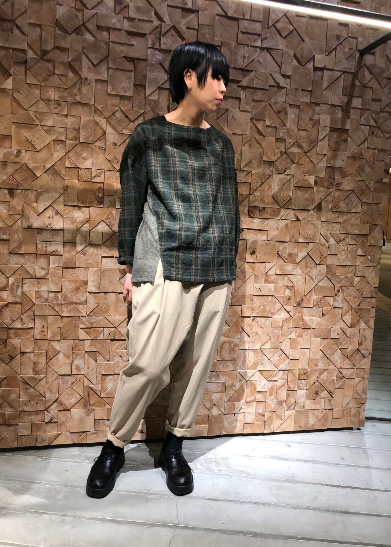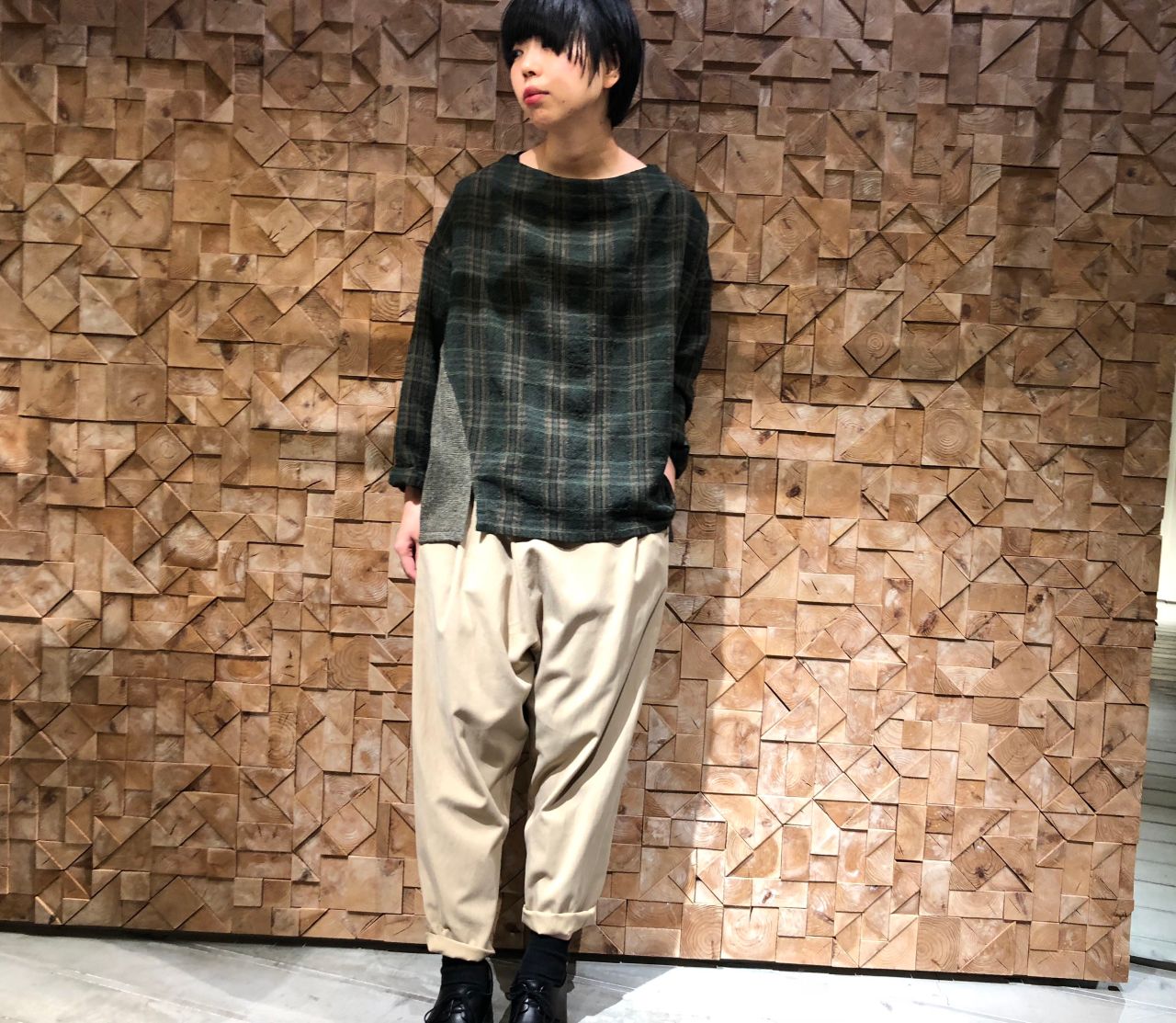 チェック柄が映える新作のブラウスはウール素材ですがさらっとした厚手すぎない生地感。