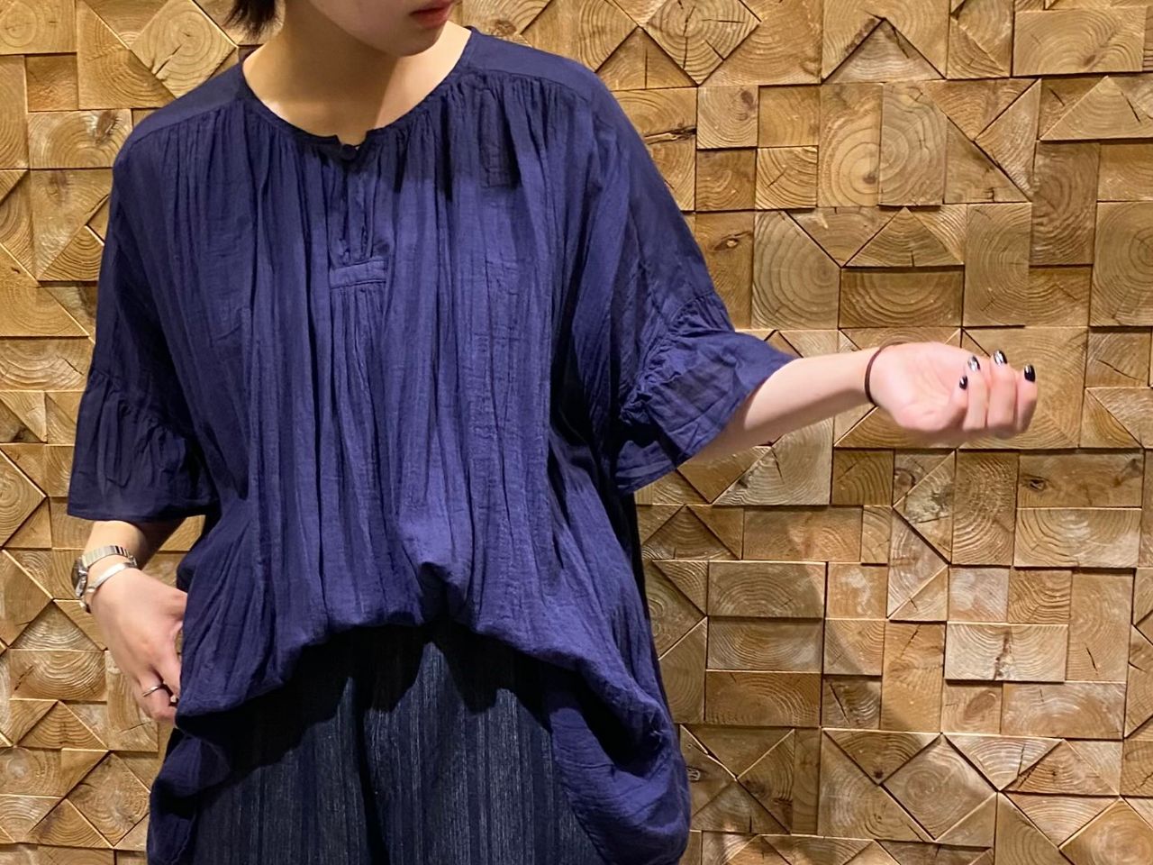 先日入荷した秋の新作から、アズライト染めのガーゼブラウスをご紹介いたします。