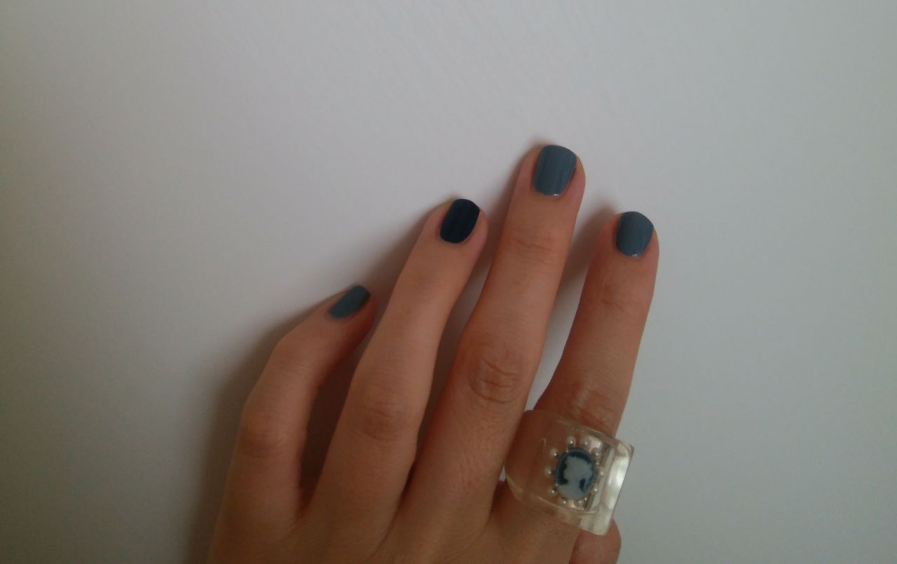 これに合わせるならTシャツのドットのカラーにも入っているブルー系のネイルを合わせたいです。