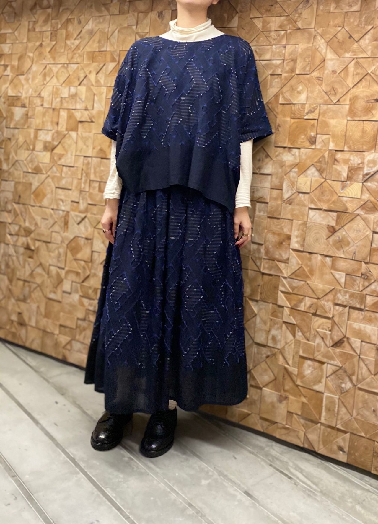 少し肌寒くなって来た最近の気候にぴったりのタートルネックのプルオーバーを合わせてみました。