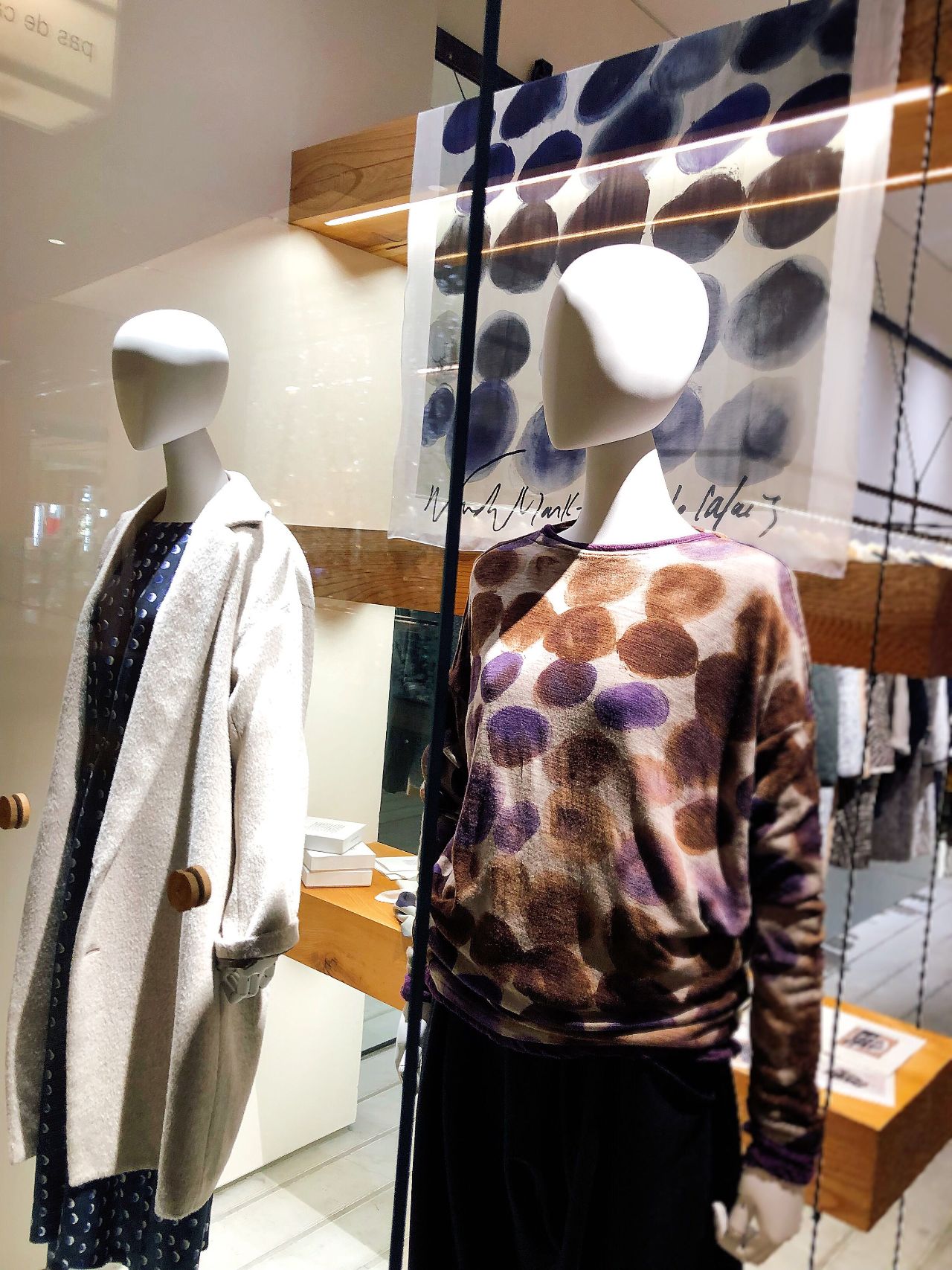 また、ブラウスはカットソー素材と切り替えのデザインでラフにお召し頂けます。パドカレらしくさりげなくボーダーが背面に入っているのも印象的です。