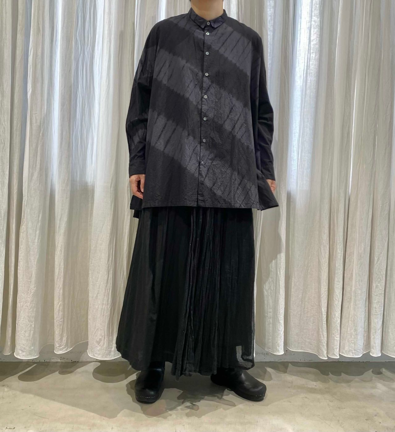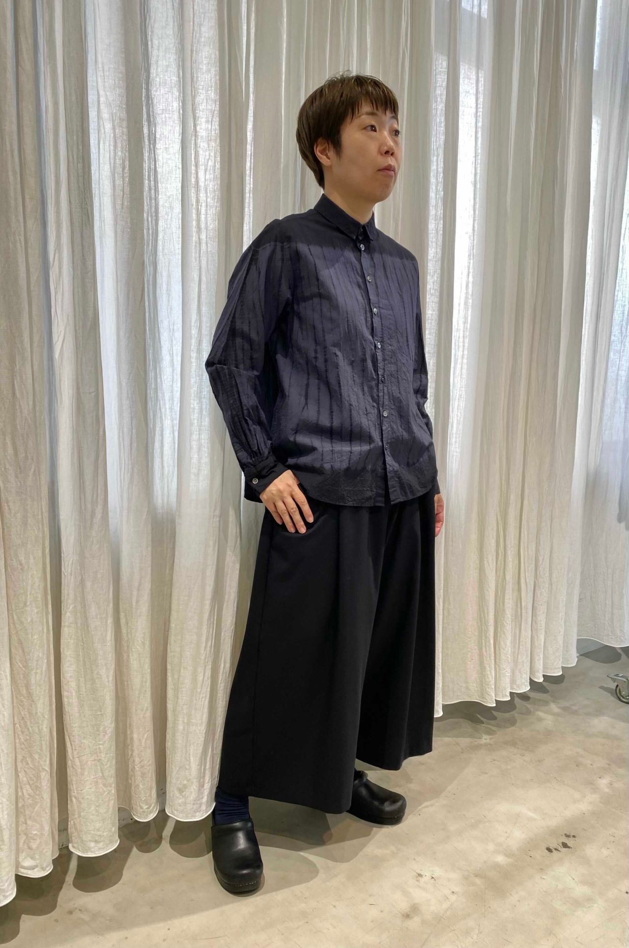 生地に張りがあり黒いアイテムと合わせてマニッシュなスタイルにしました。