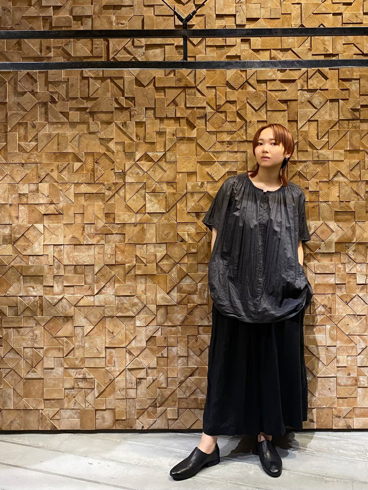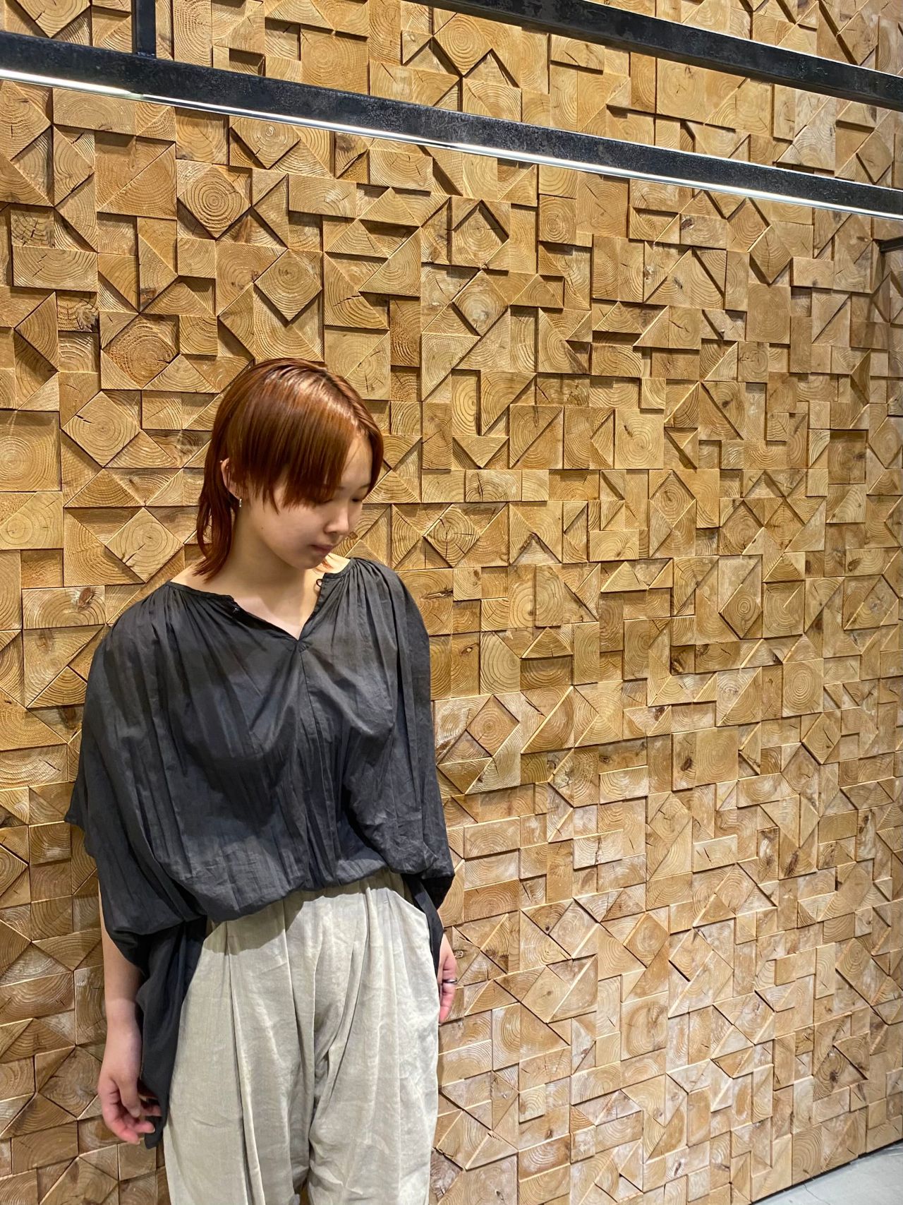新しい考えと技術で草木染めを改良した自然染色法『ナチュラルダイ』を施したブラウス。