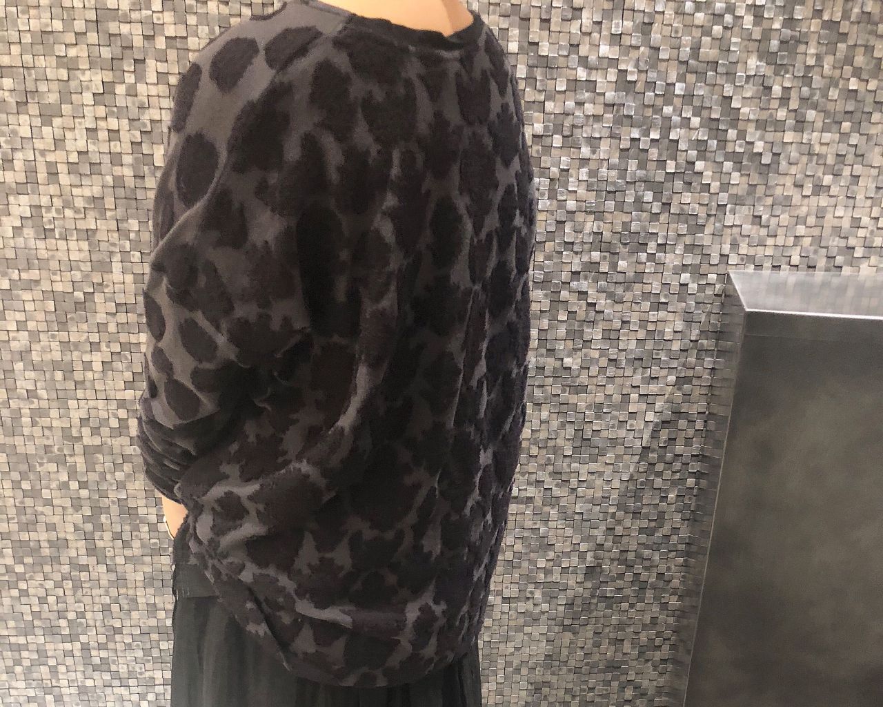 トップスは表はドット柄、裏はオーナメント柄と遊び心が利いたデザインです。ジャガード部分にはモヘアを使用。