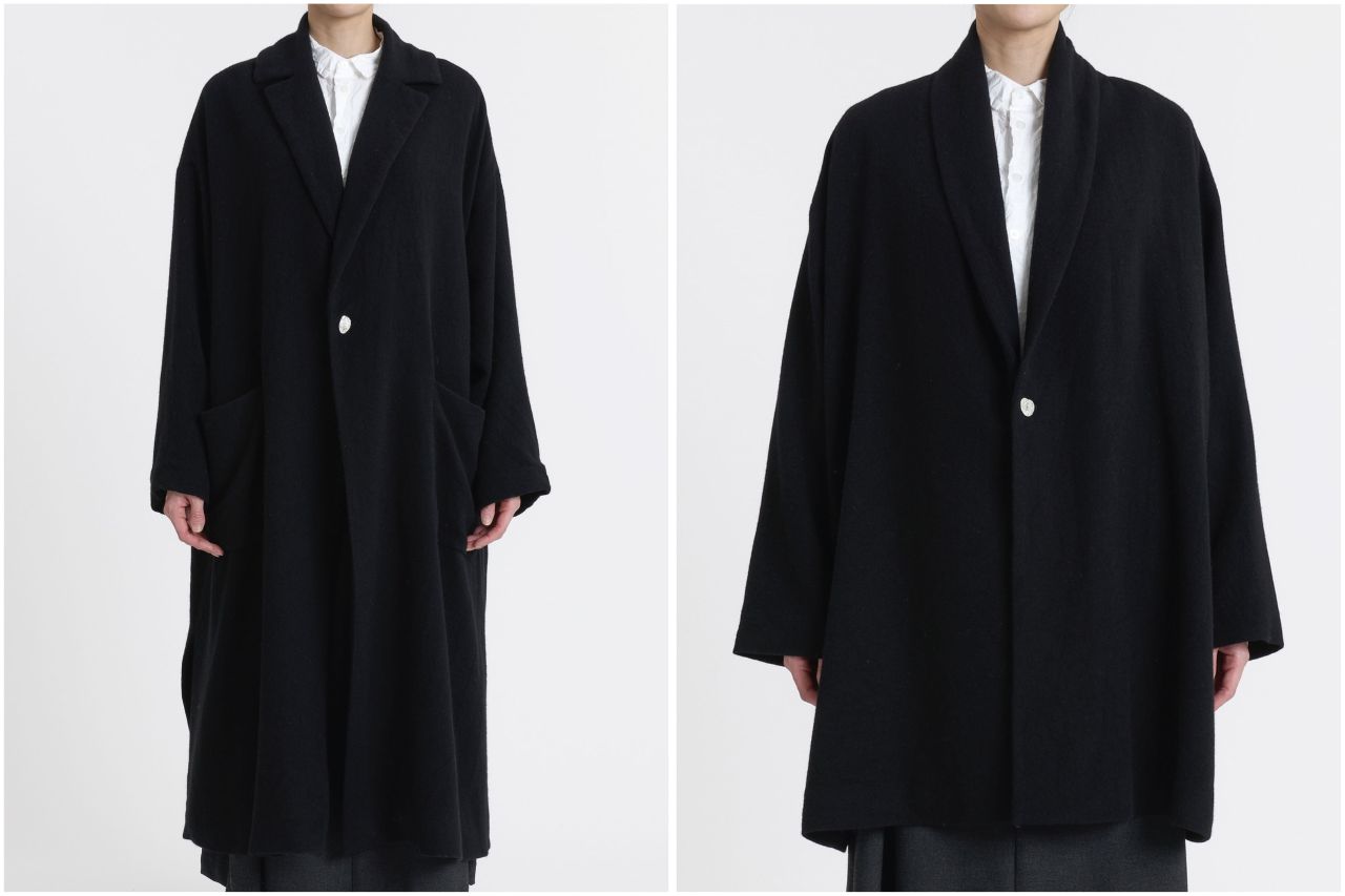 name.カシミヤソフトツイル ショールカラーロングコート(左)