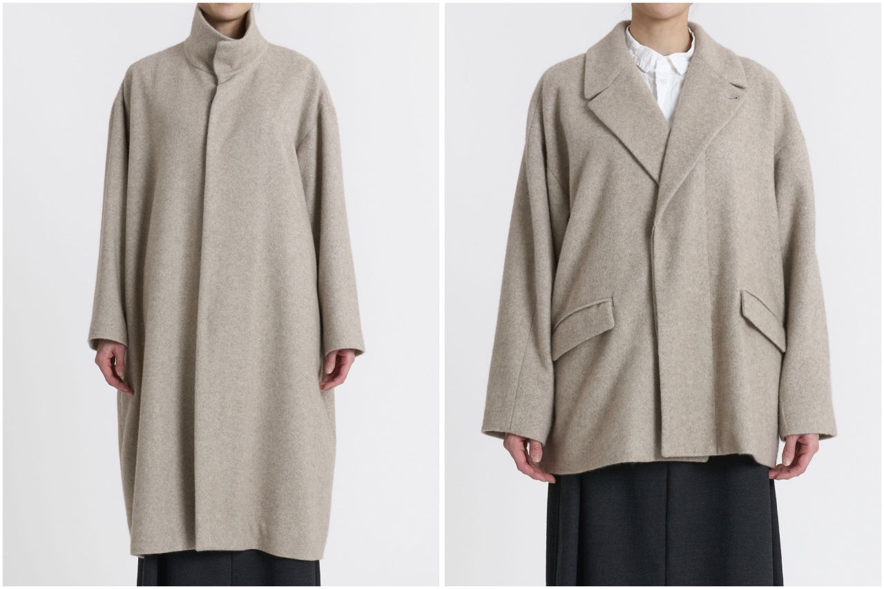name.カシミヤツイード スタンドカラーコート(左)