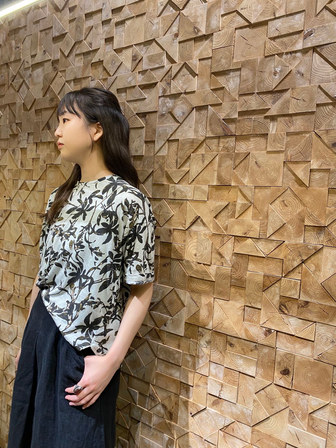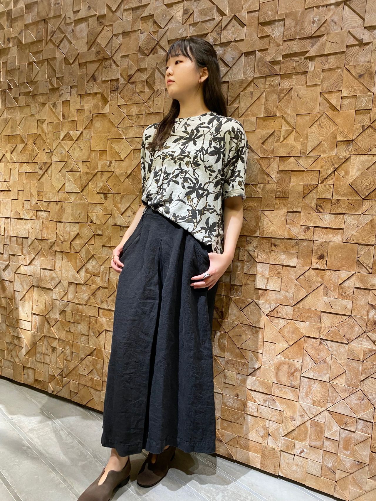 1枚で雰囲気のあるボタニカル柄のカットソーは