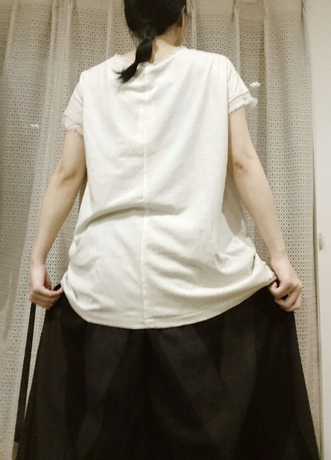 着てみると前身頃のウエスト部分に立体感が出て、それによって着痩せして見えます。