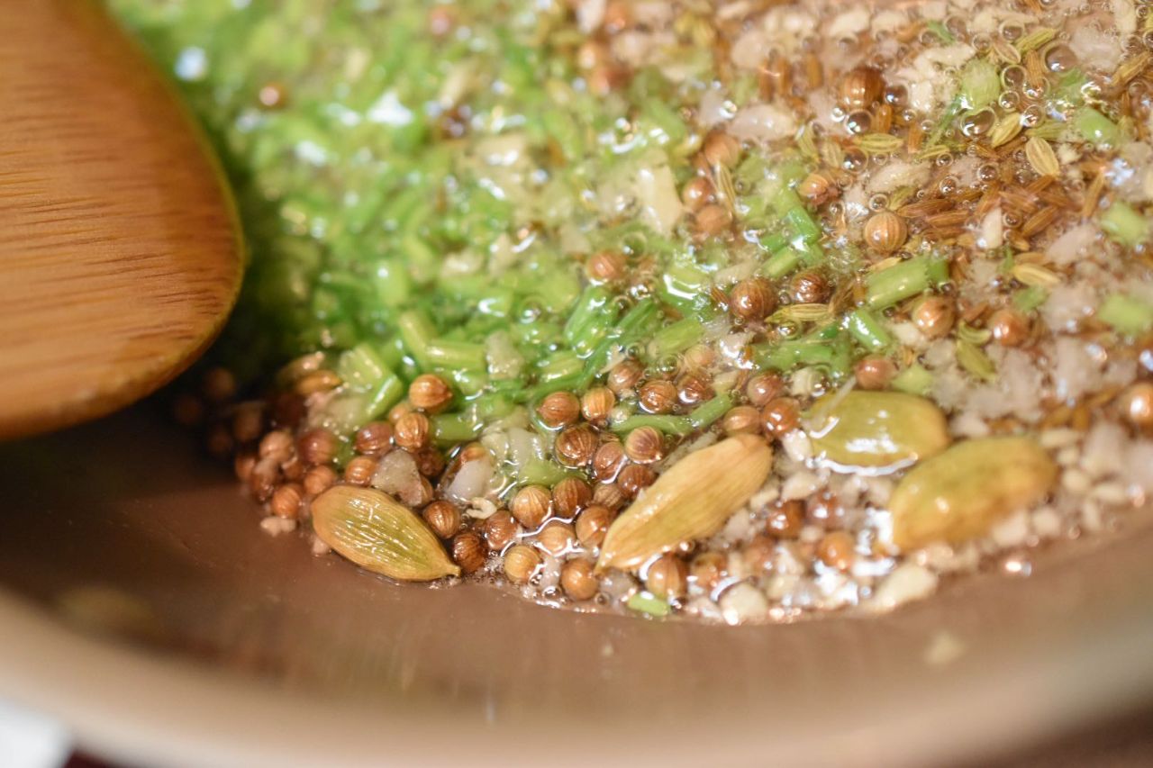 ホールスパイスの香りを油に移すこの工程がとても好きです。