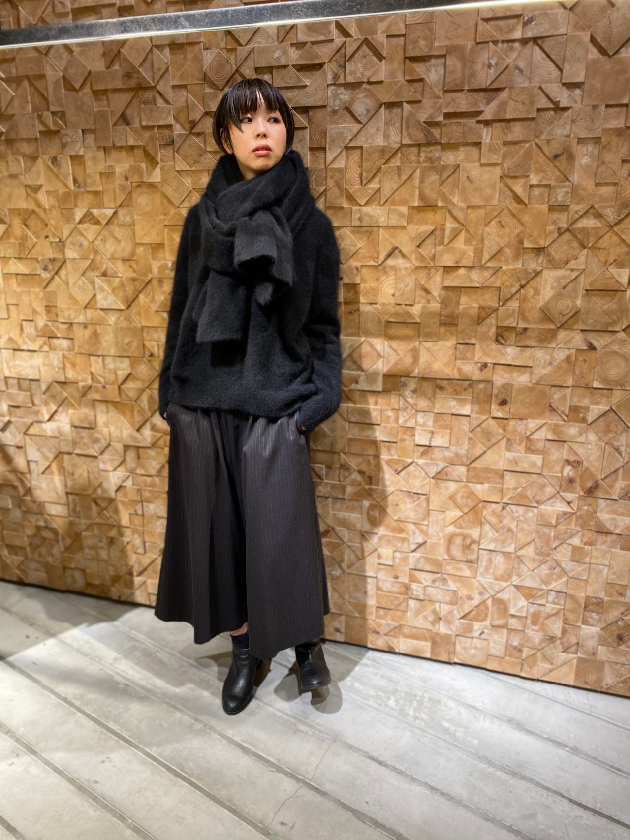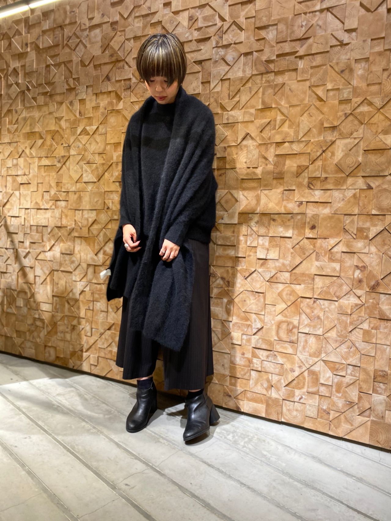 ラクーンニットを使ったコーディネートをご紹介致します。