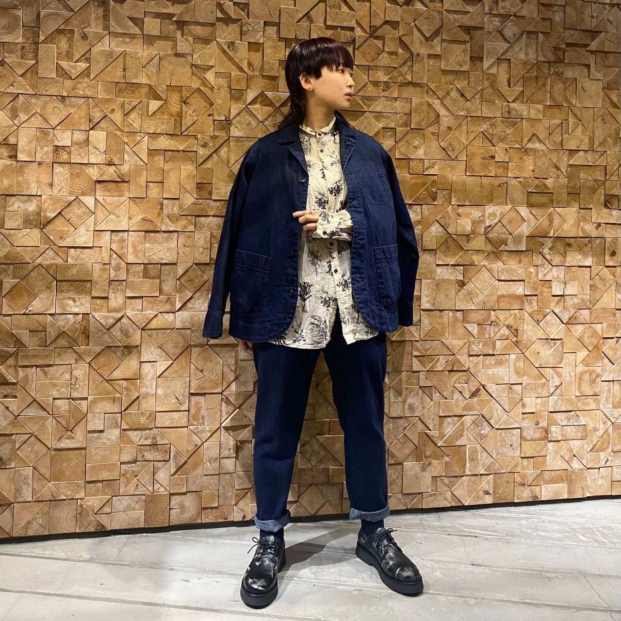 ジャケットは程よいサイズ感のボクシーシルエットなのでワンピースなどの羽織りとしても最適です。
