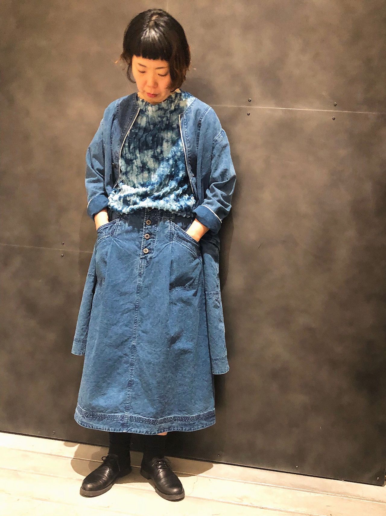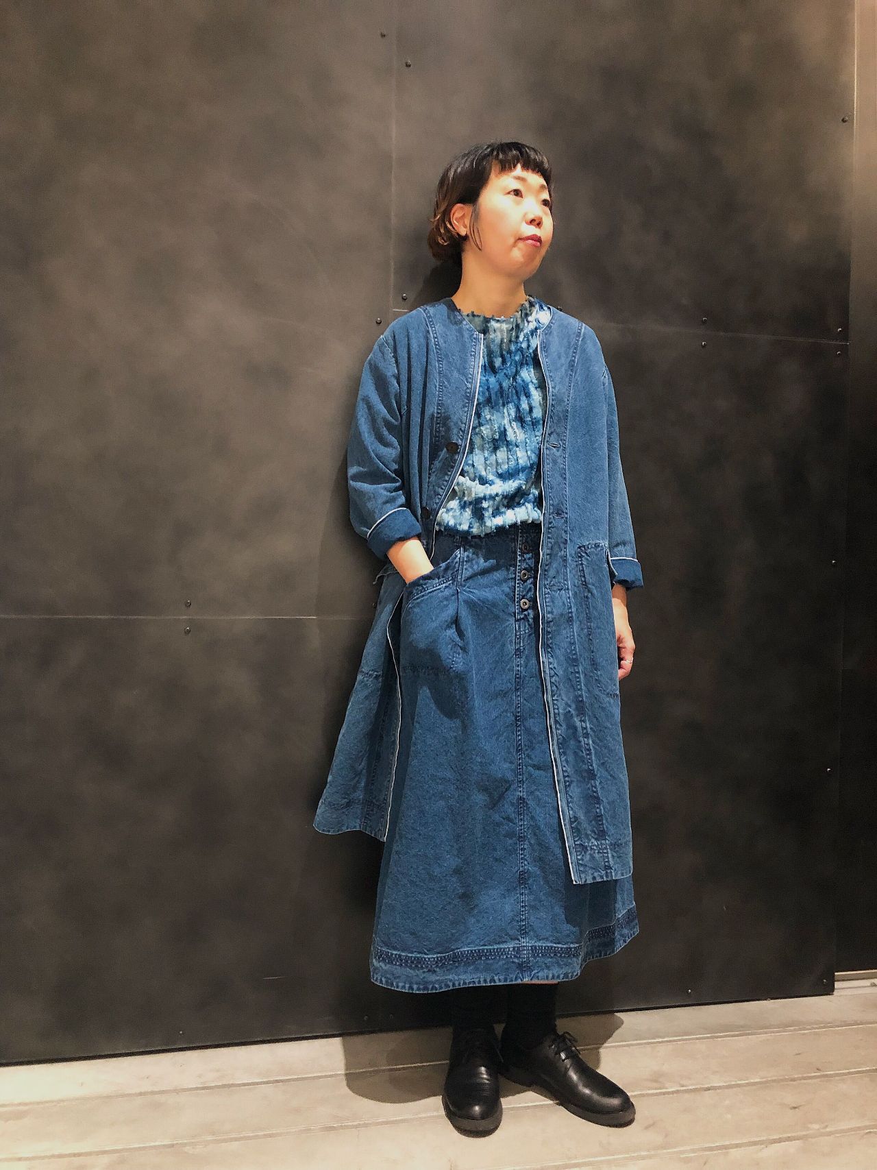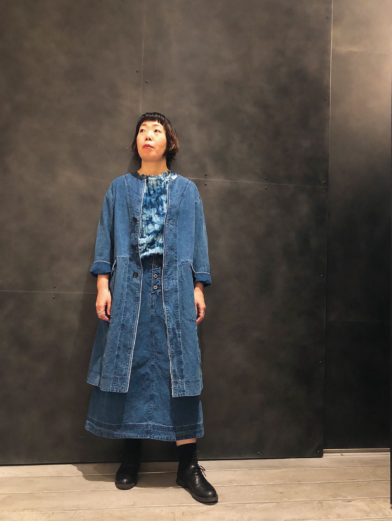 着ていくうちに風合いが変化して馴染んでいく過程もお楽しみ頂けます。一般的なデニムより軽いのも魅力です。コートは程よく細身のラインでスッキリとお召し頂けます。