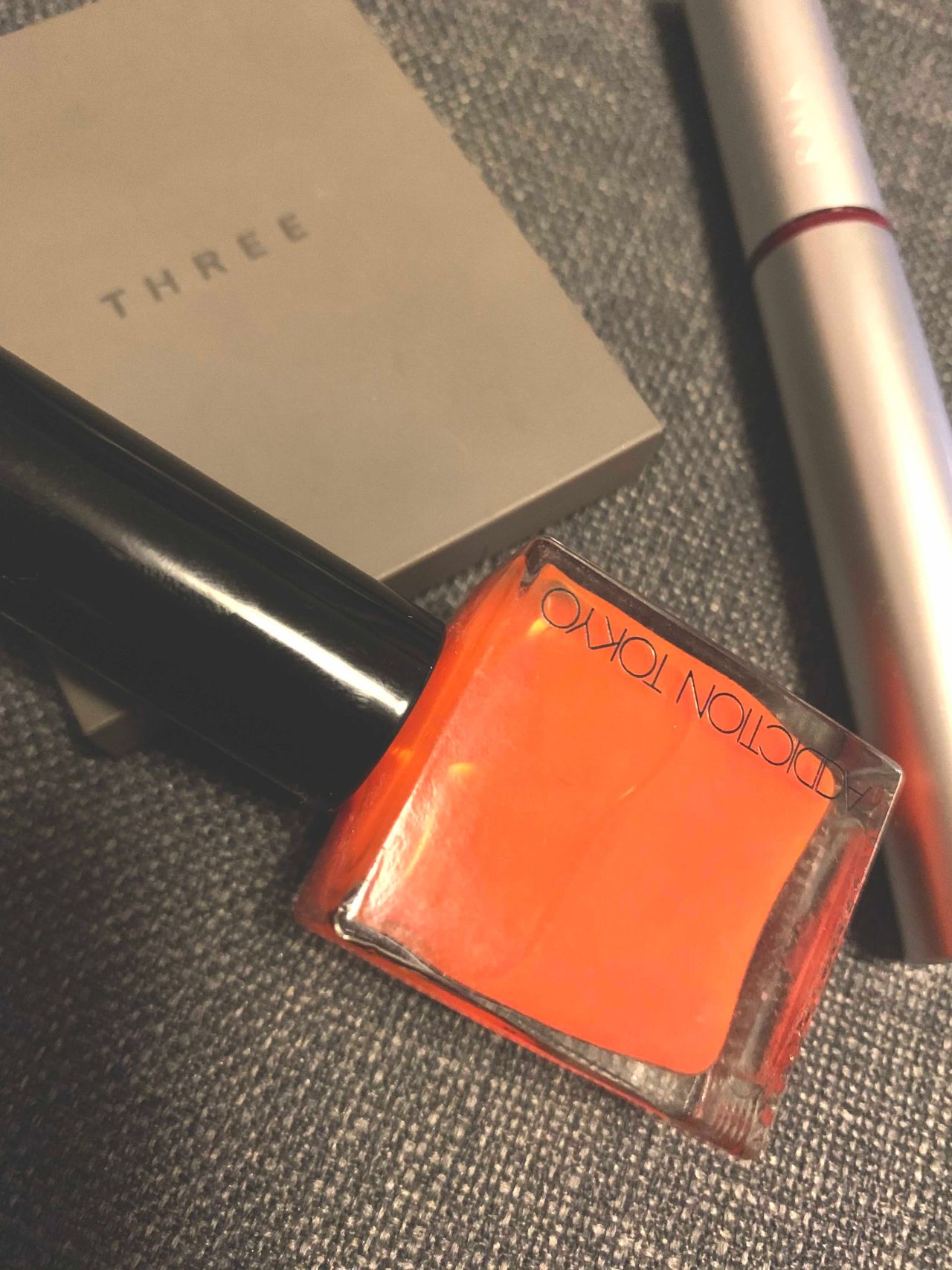 透明感のあるオレンジは好きなカラーなのですが、全体や顔まわりに使うのがあまり似合わないタイプなのでポイントで入れることが好きです。