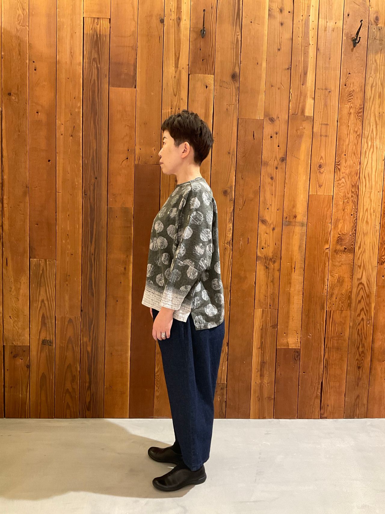 本日ご紹介するのは、かすれたようなドットがやわらかな印象のプルオーバー。