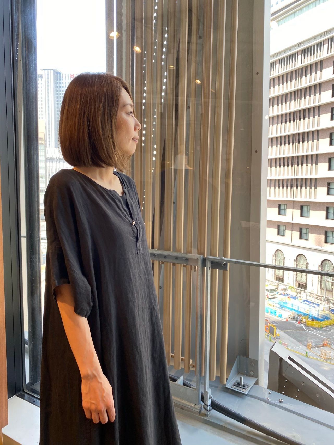 肘までの長めの袖丈で、1枚で着ていても安心感がありますね。