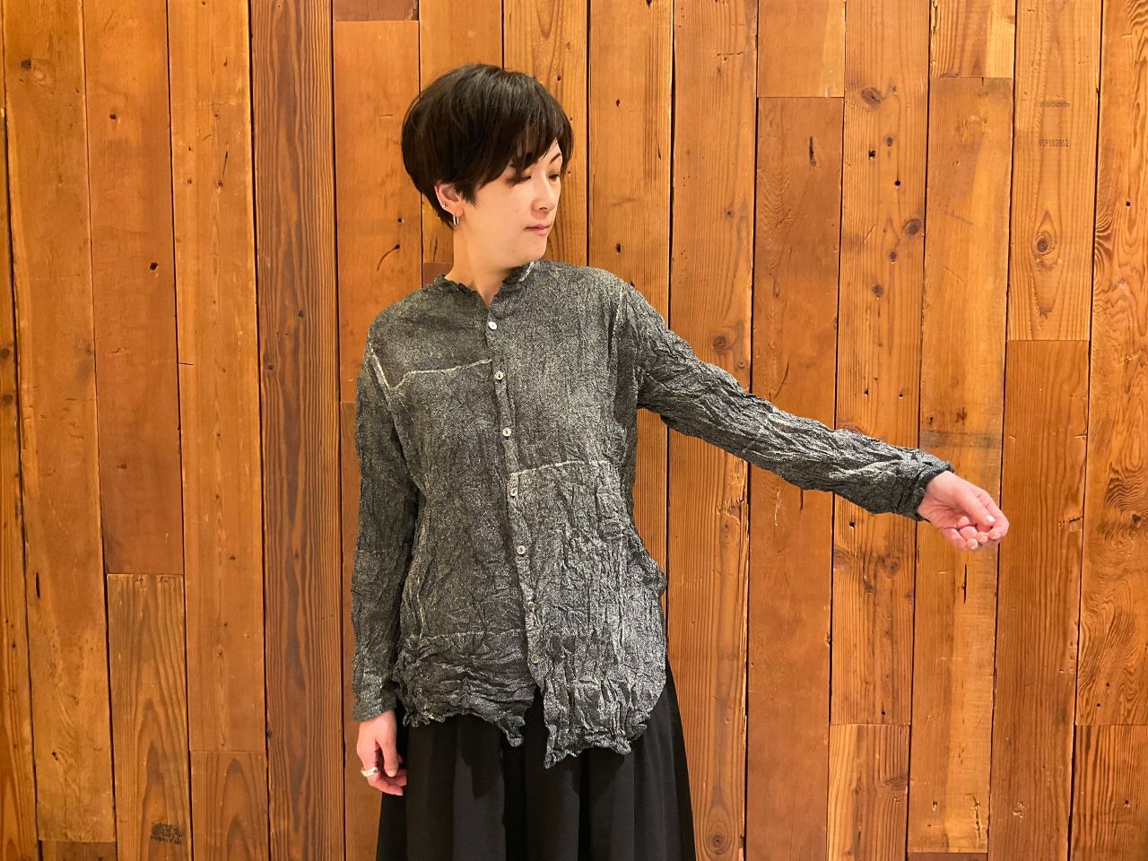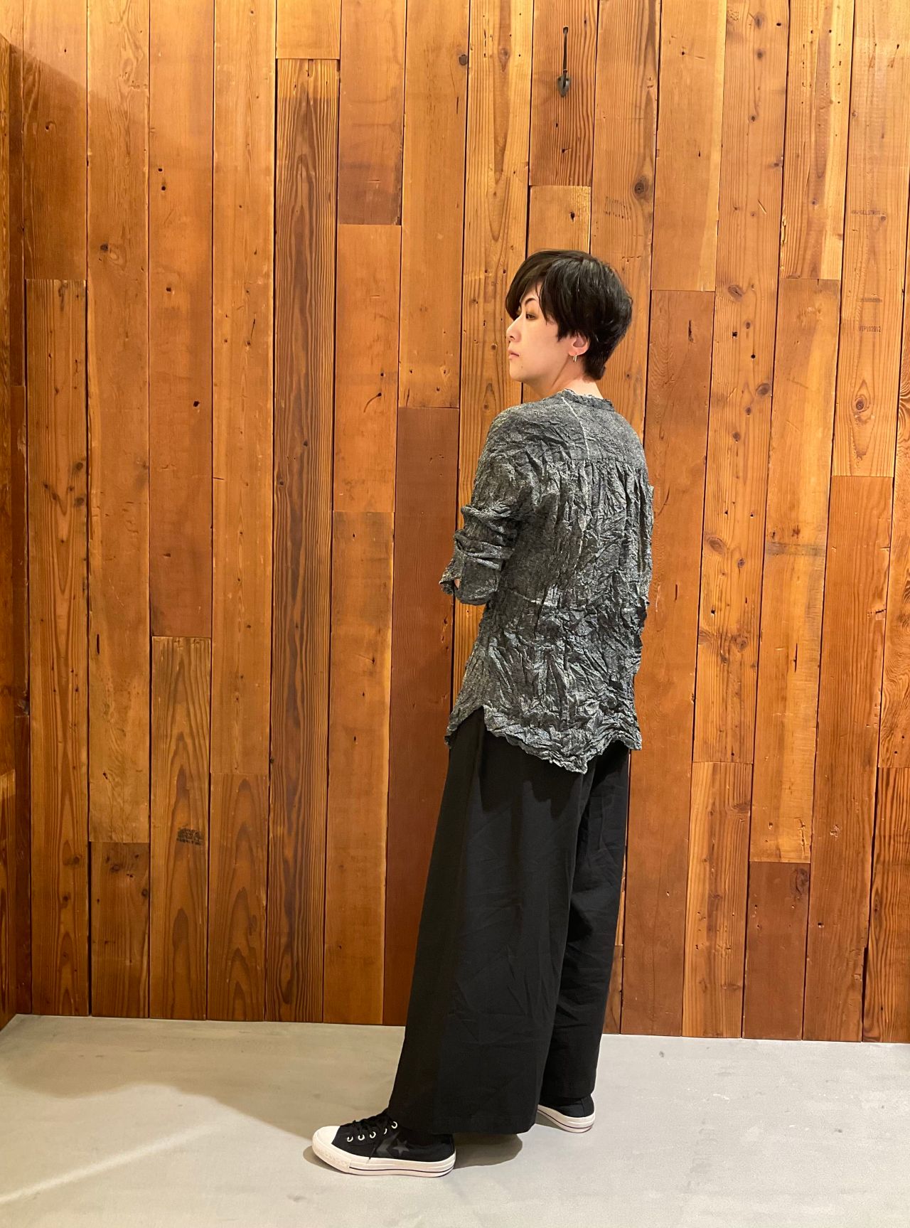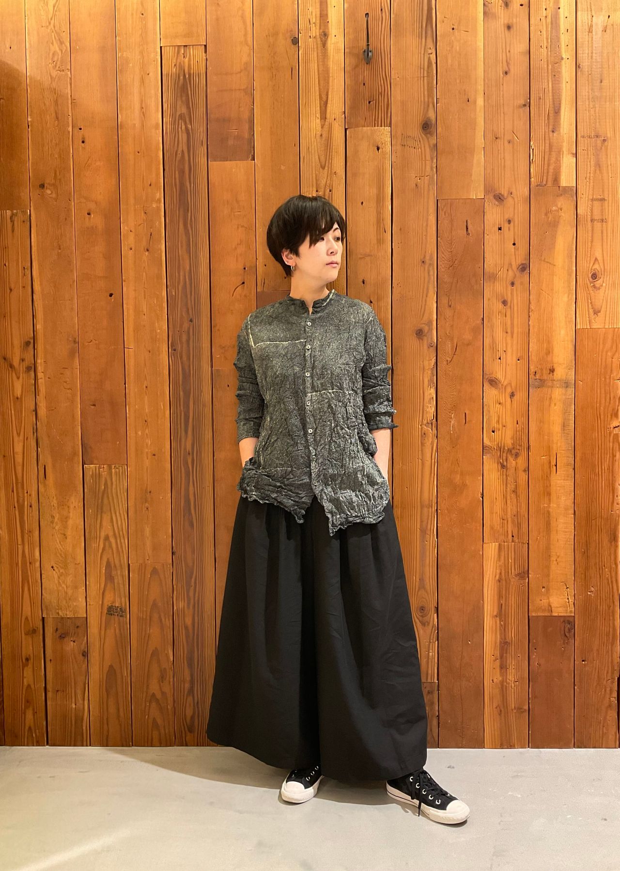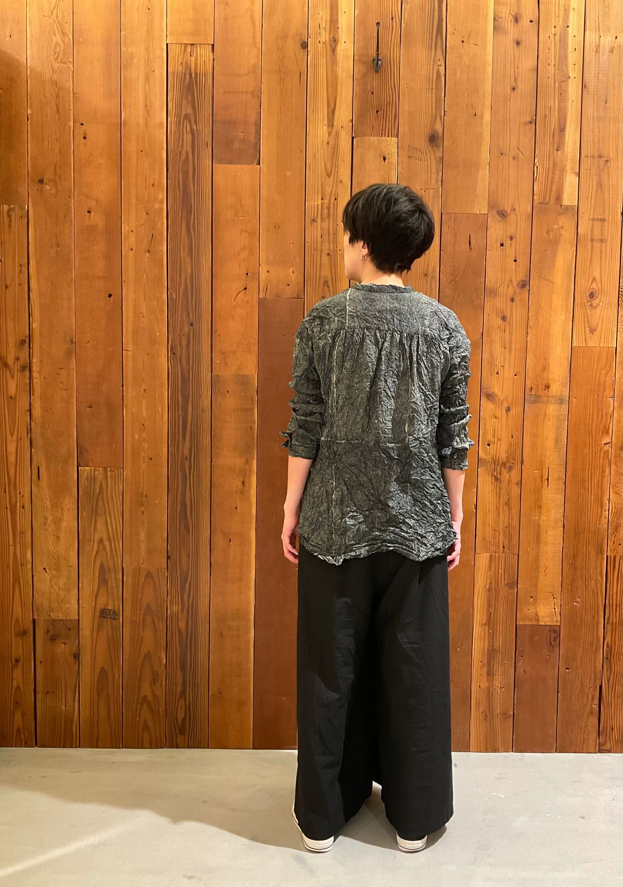 手作業ならではの不均一さは奥行き感を出し、さらに柄感を活かすためのハンドウォッシャーにてシワ加工を施しています。