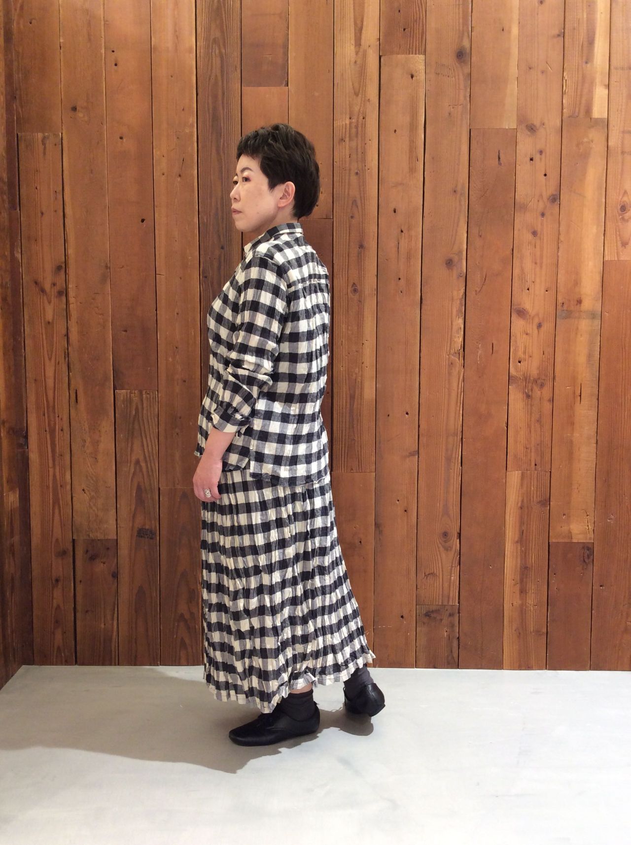本日ご紹介するのは、ブロックチェック柄のブラウスとスカート。