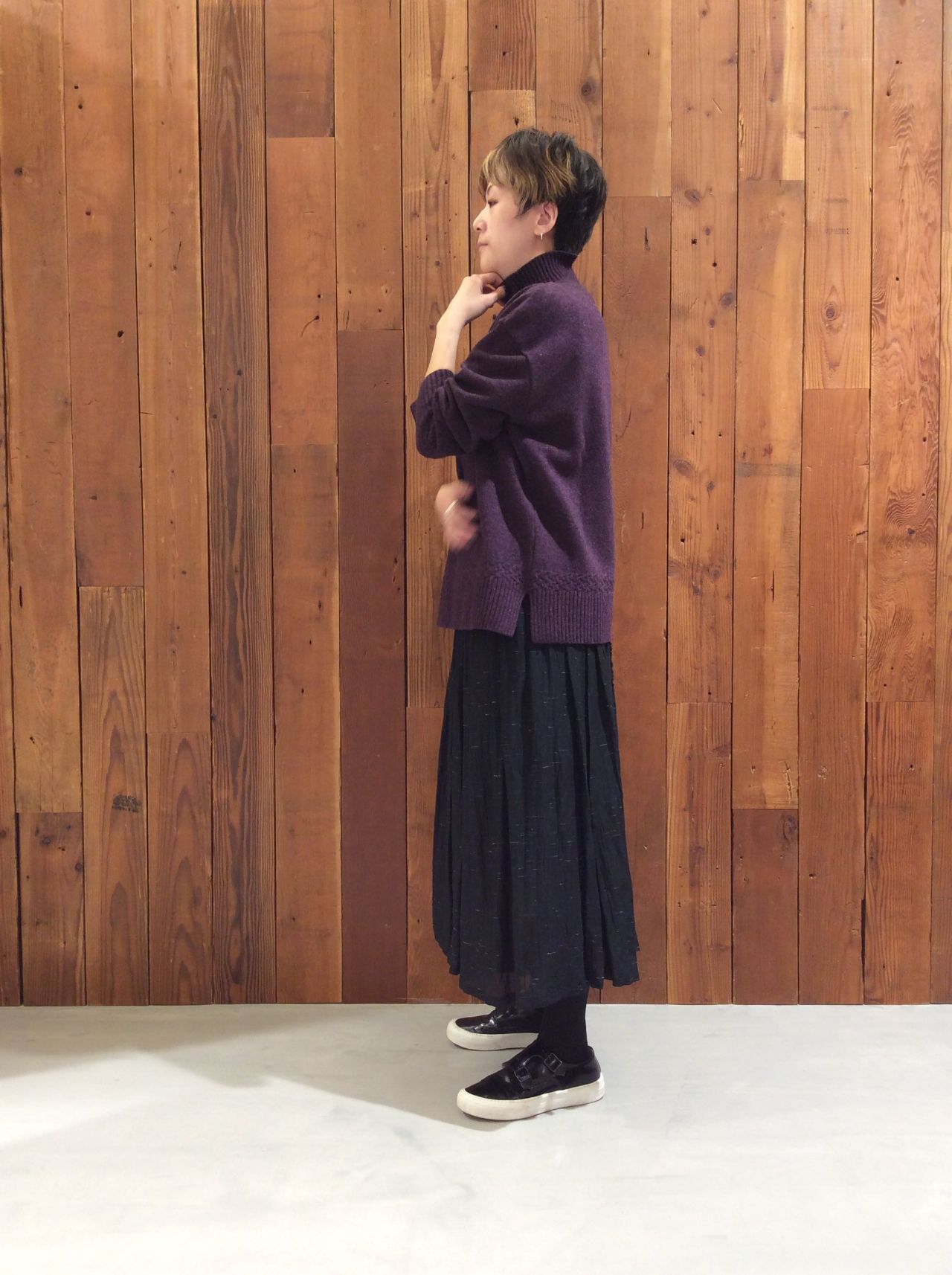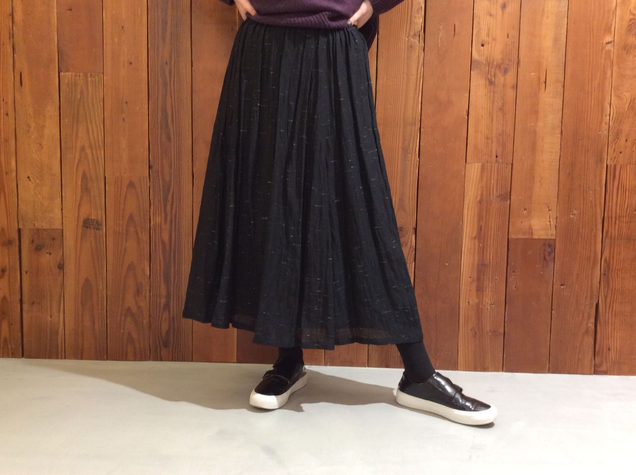 合わせたのは、麻キュプラ素材のオールシーズン着られるスカート。