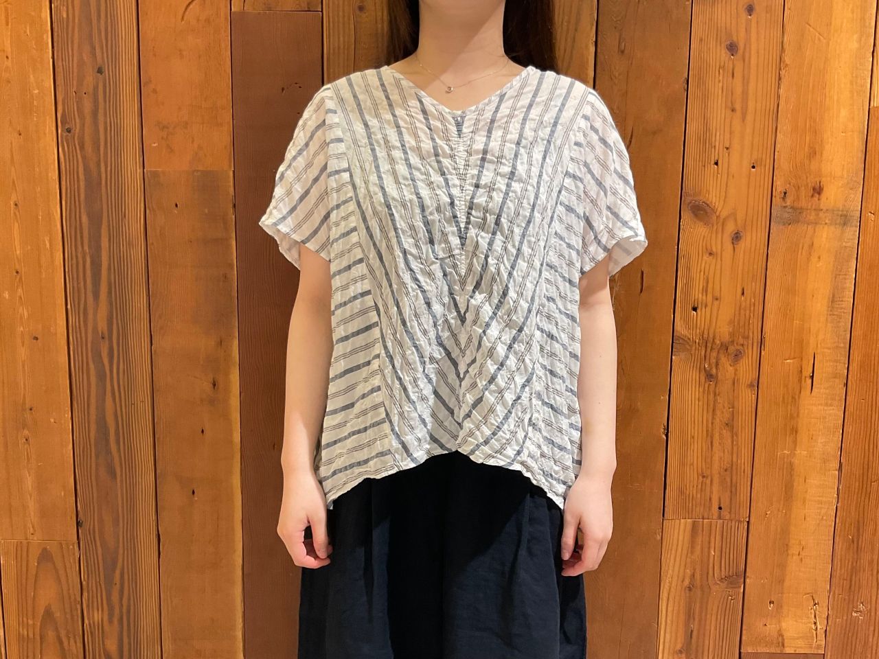 ブログ連動企画「G.W collection」 シャーリングストライプブラウス