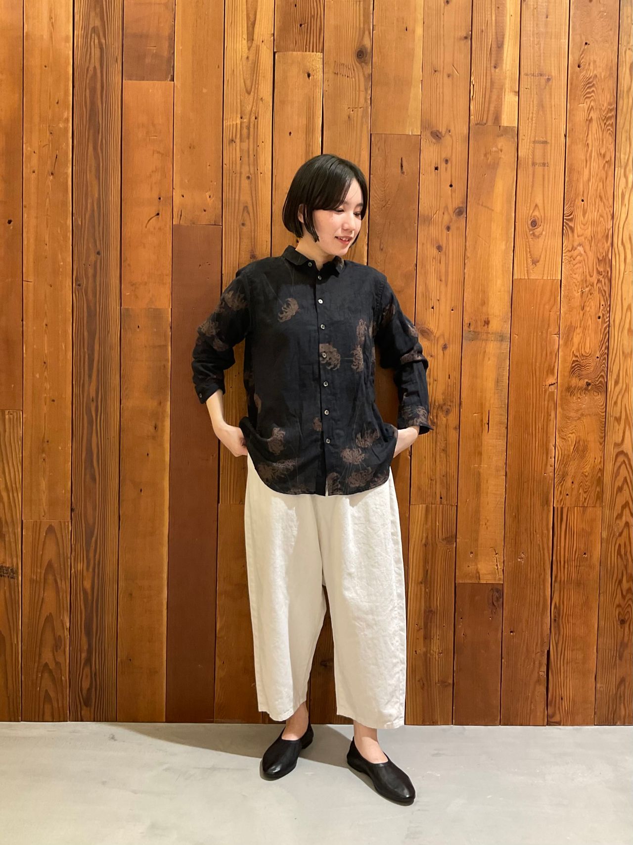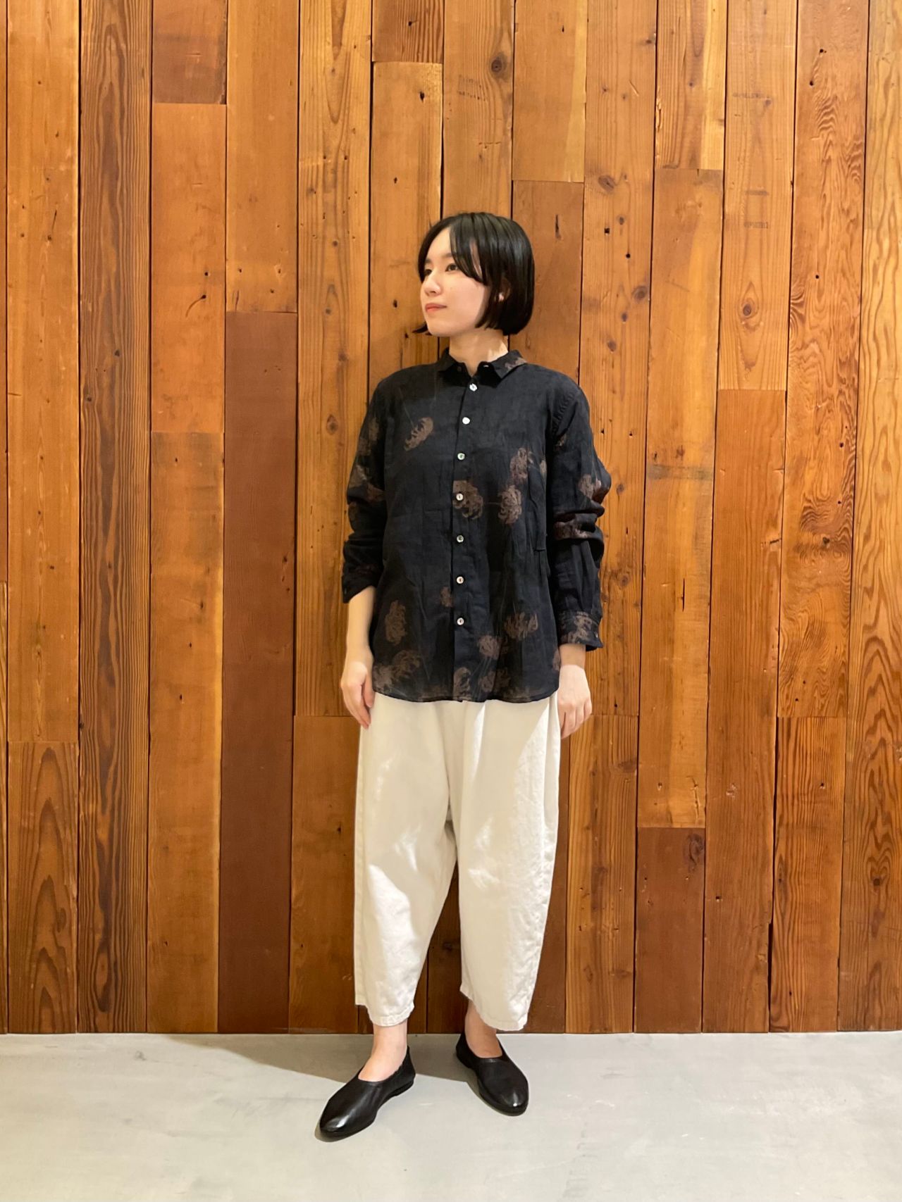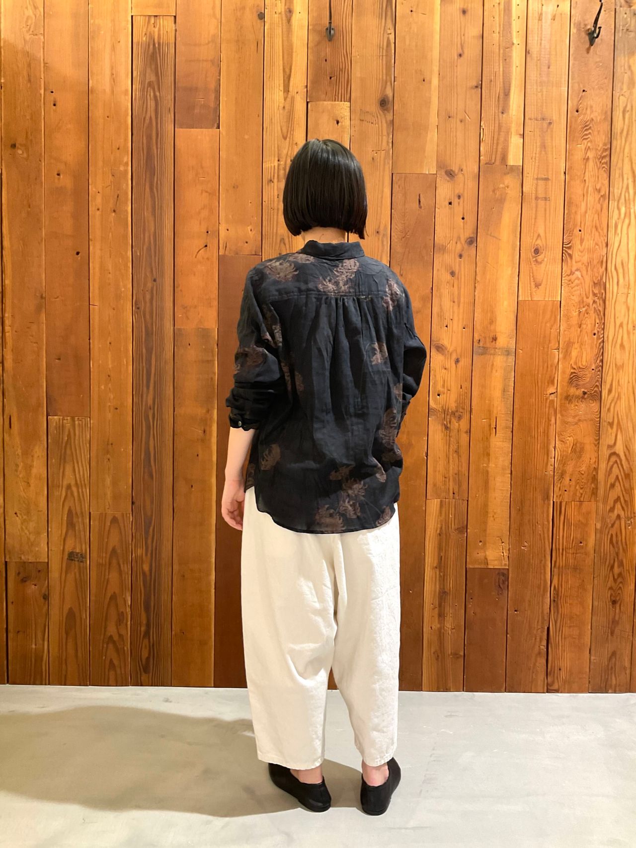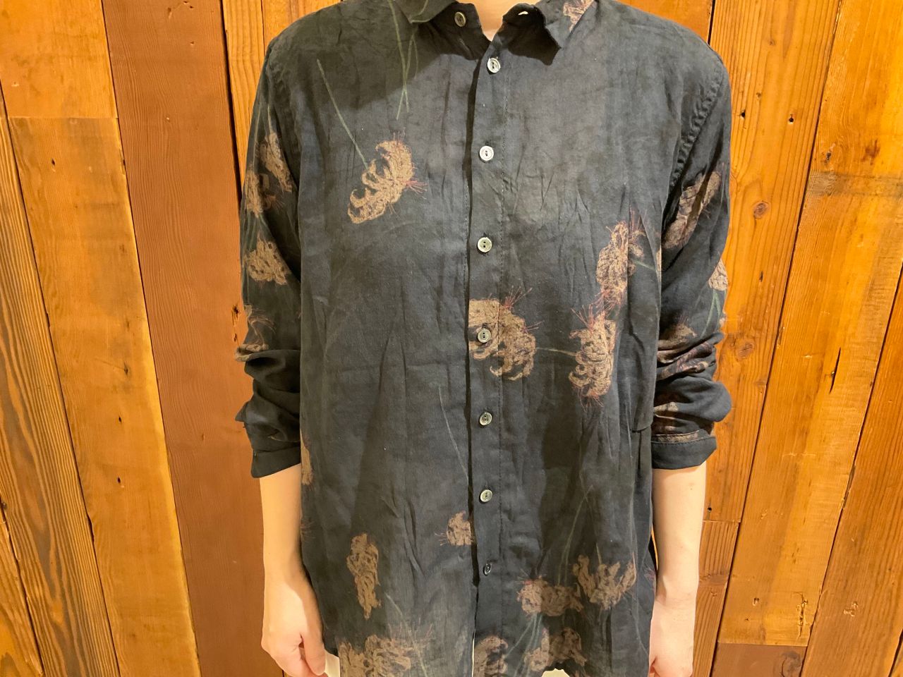 綿ガーゼ生地に彼岸花のモチーフをプリントしたシャツ。