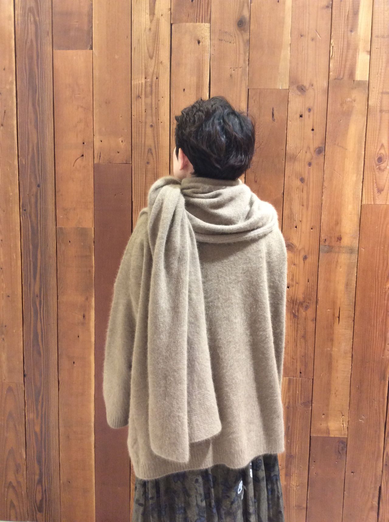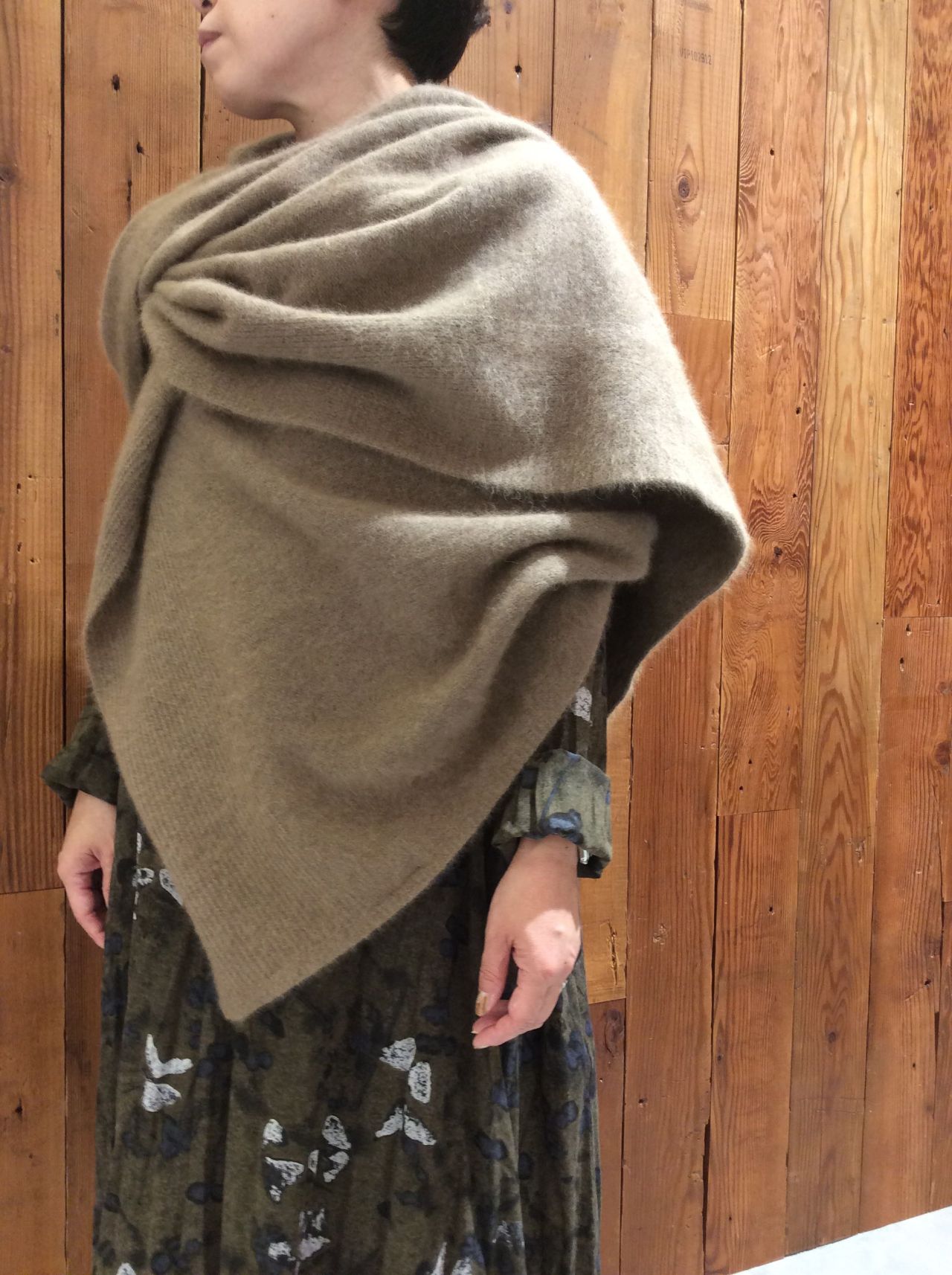 程よい大きさと厚みで、シンプルに巻いてもポンチョやカーディガンのようにちょっとした羽織りとしても使えてコーディネートの幅が広がります。