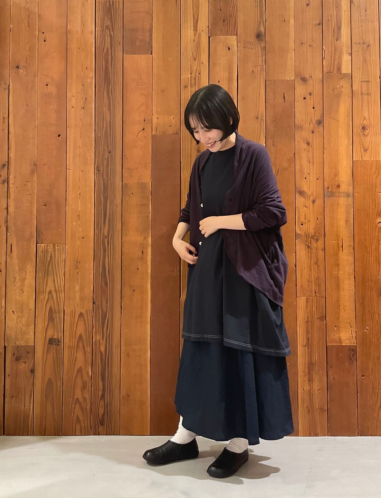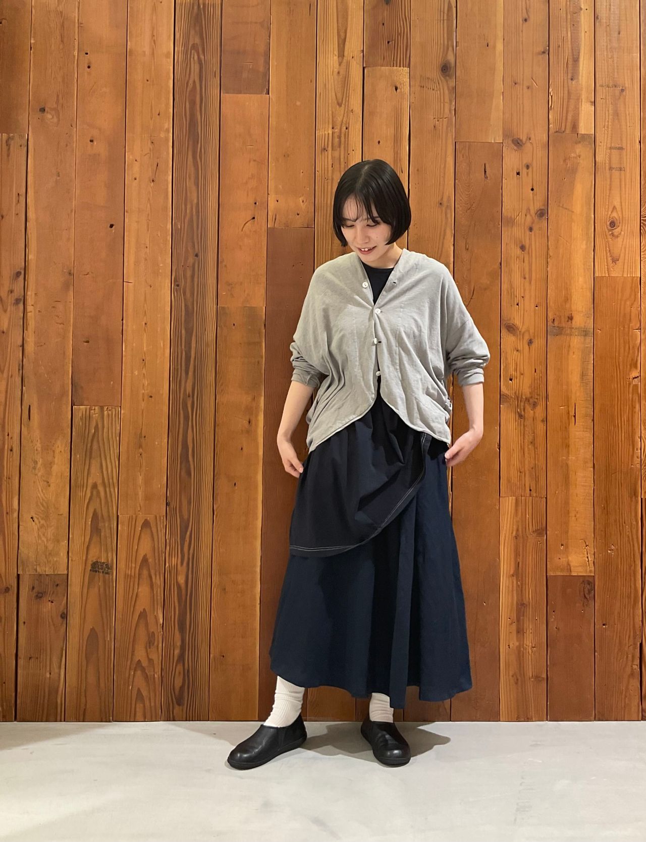 柔らかなコットン素材で作った、クシュとした衿にニュアンスがあるカーディガン。