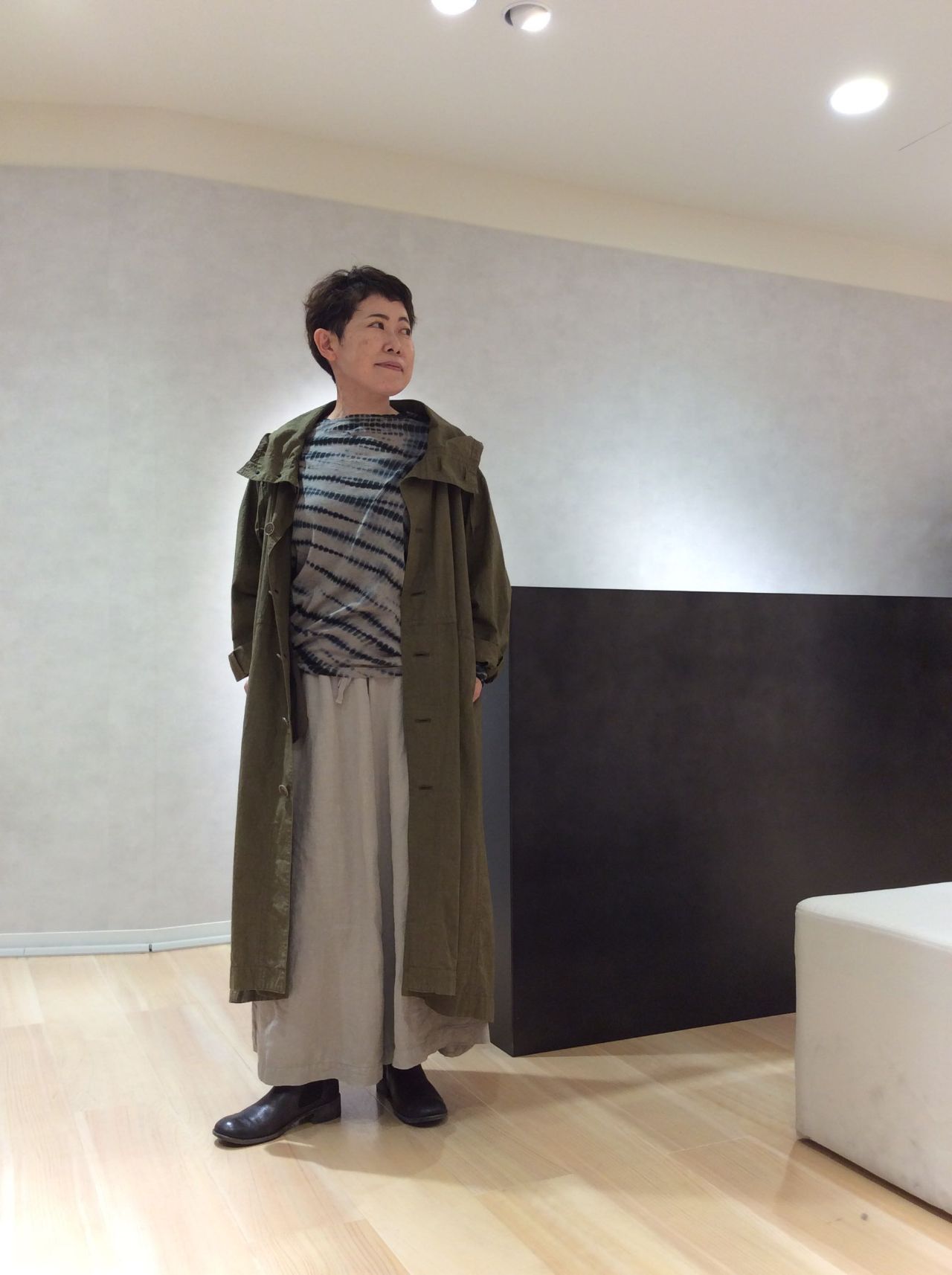 ゆったりとしたデザインなので、インに厚手のニットを着ても窮屈感がなく、すっきり着ていただけますよ。