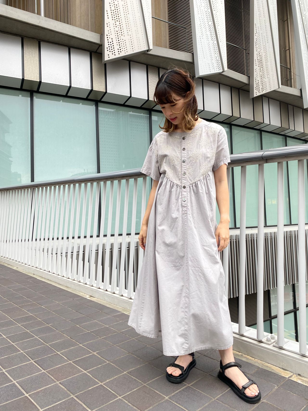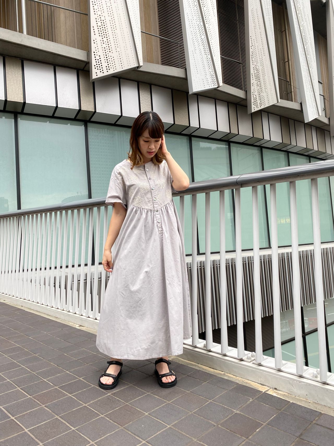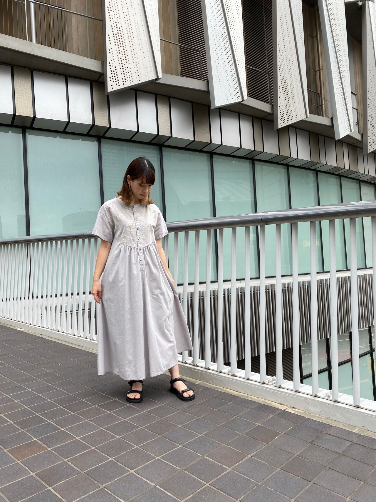ナチュラルな綿麻の生地に、刺繍を施したロングワンピース。
