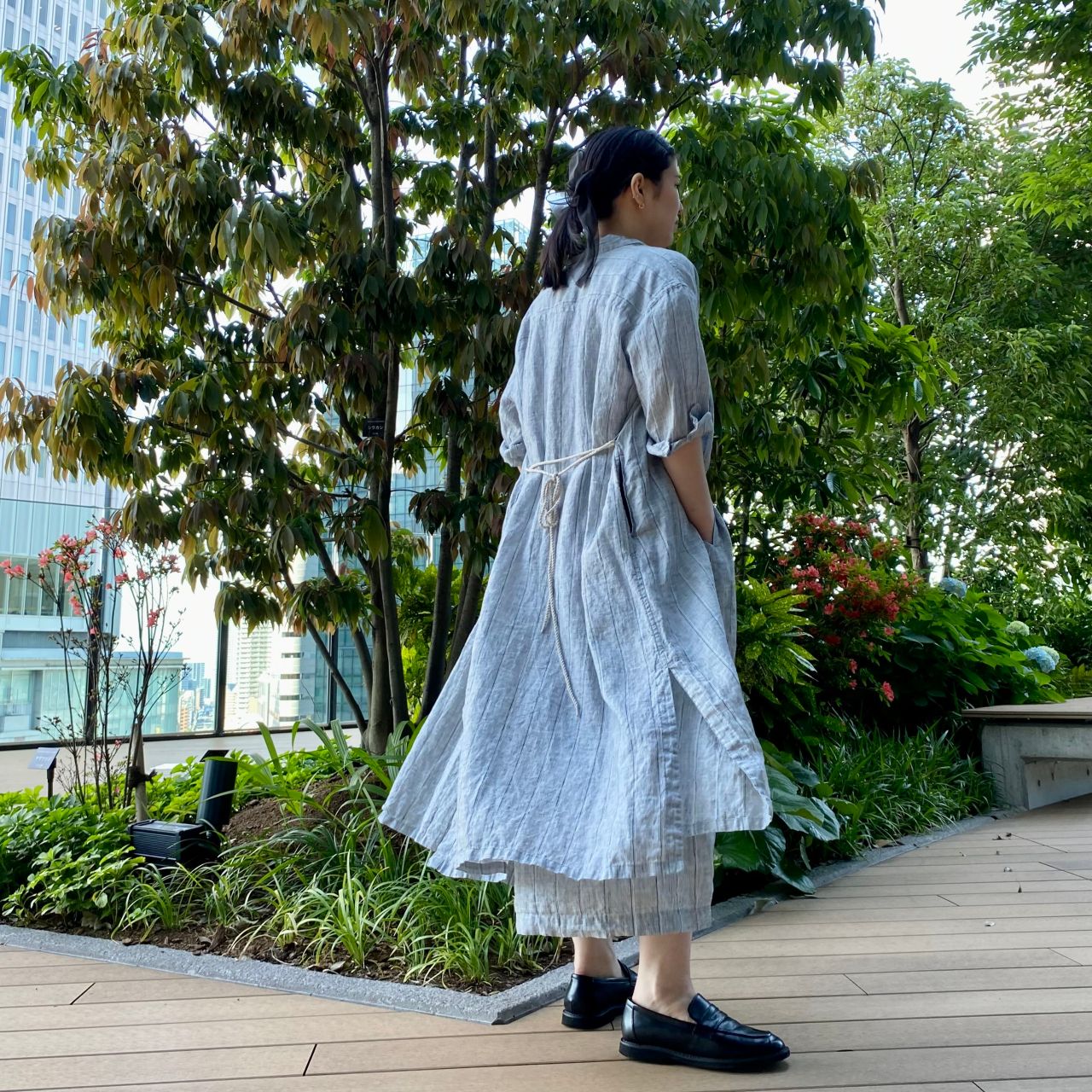 清涼感の際立つストライプ柄のシャツドレスでコーディネートを組んでみました。