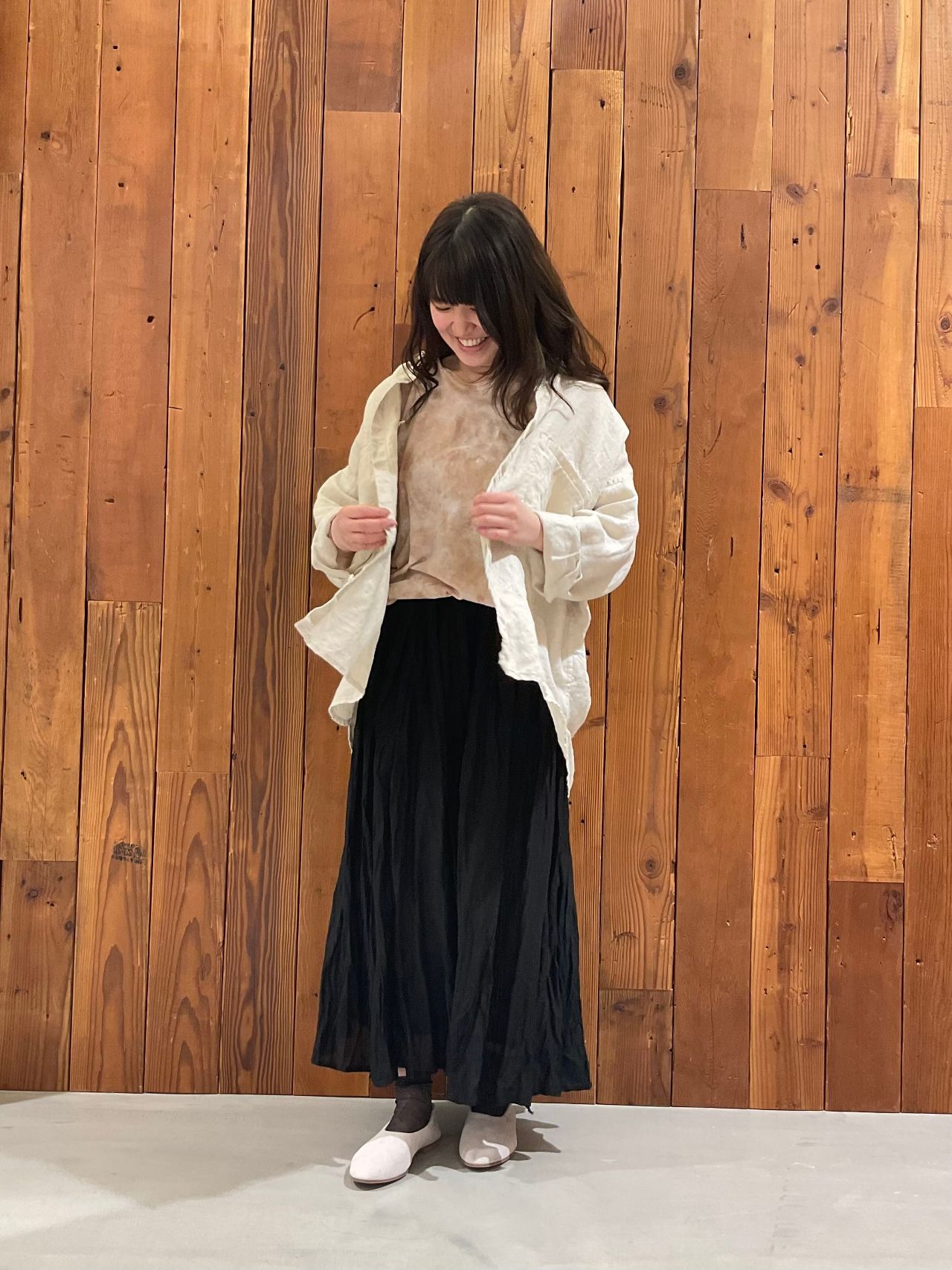 ロングスカートでリラックス感のある着こなしや、細身のパンツですっきり合わせていただくのもおすすめです◎