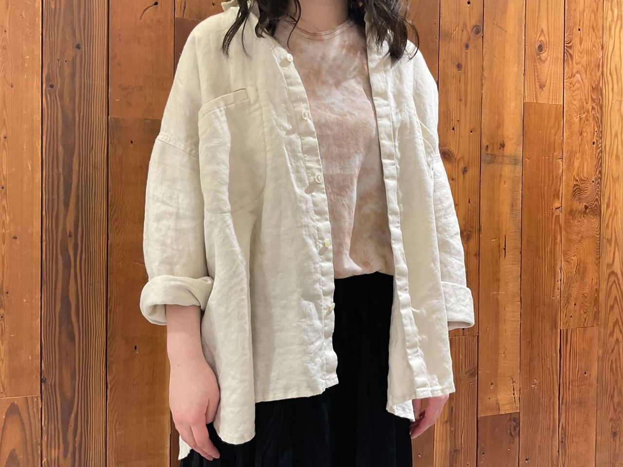 後ろ見頃を少し長めにしたラウンドを描く裾など、女性らしいさを感じる一枚です。