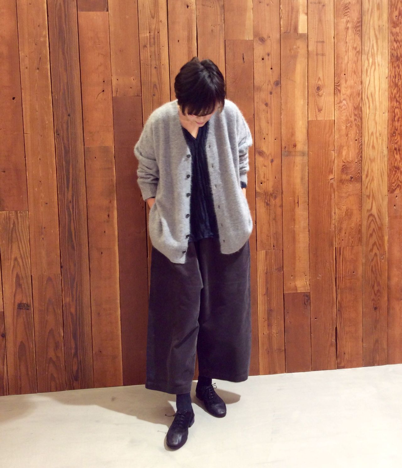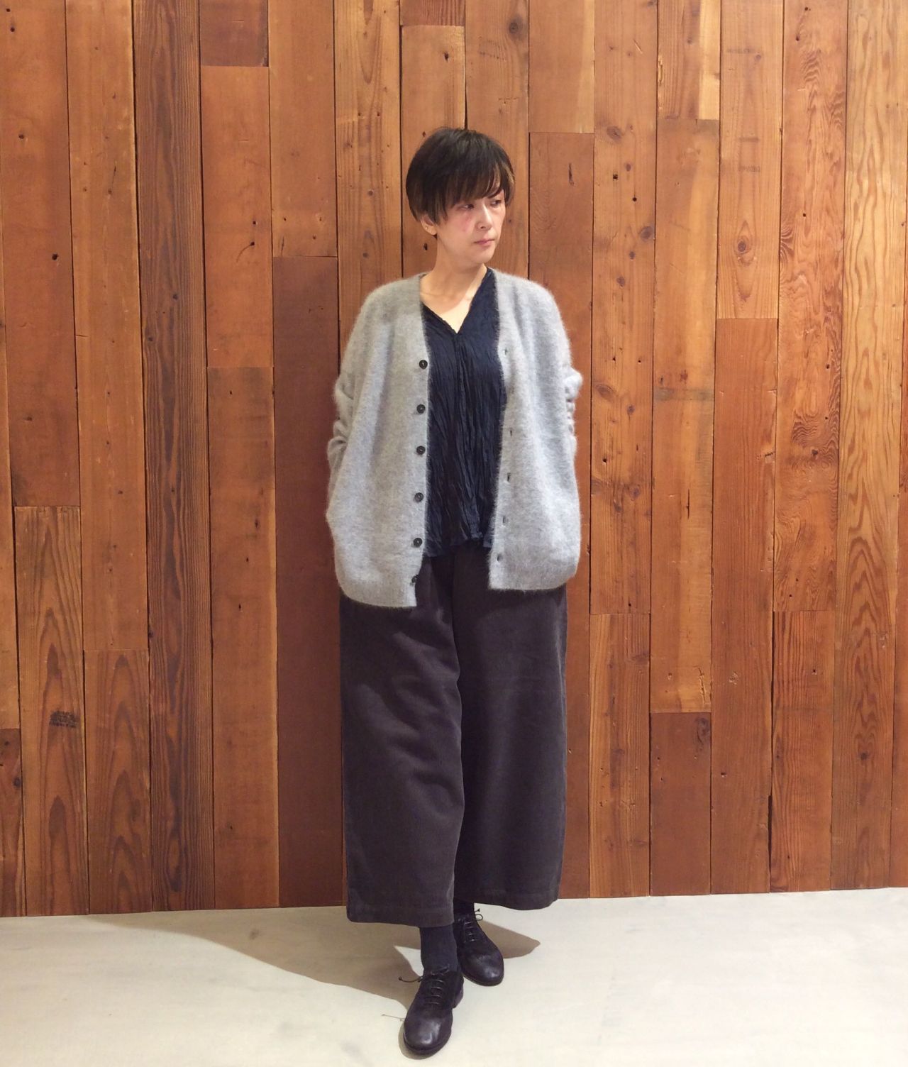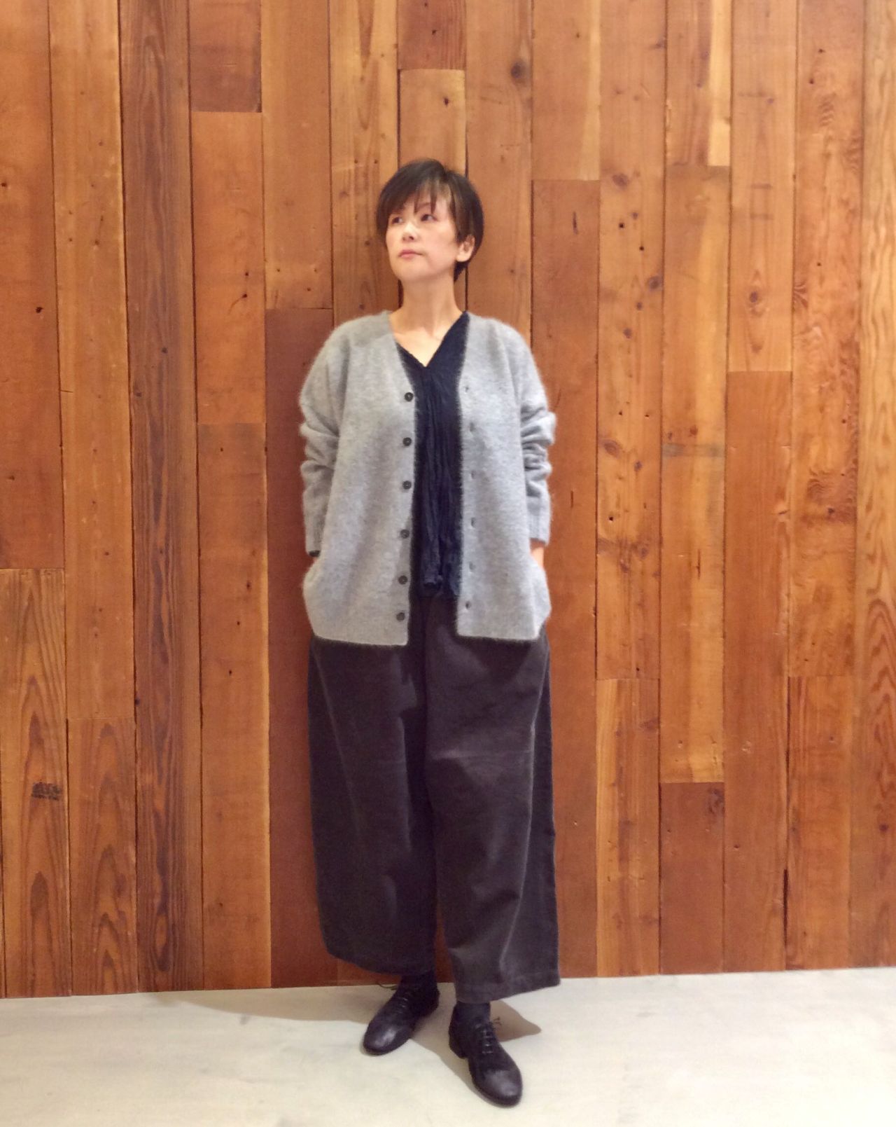 ボタンをとめて1枚で着ても素敵です。