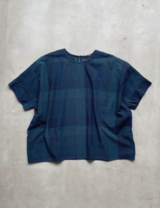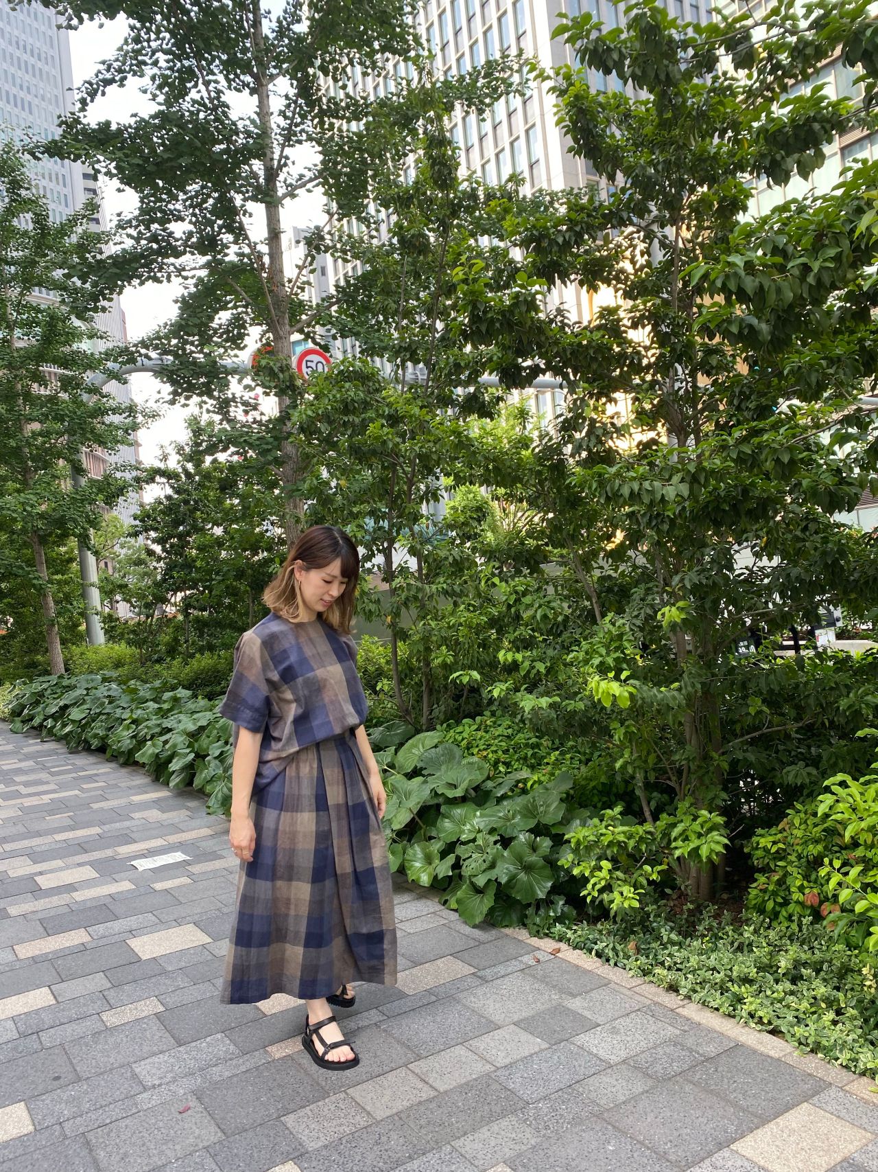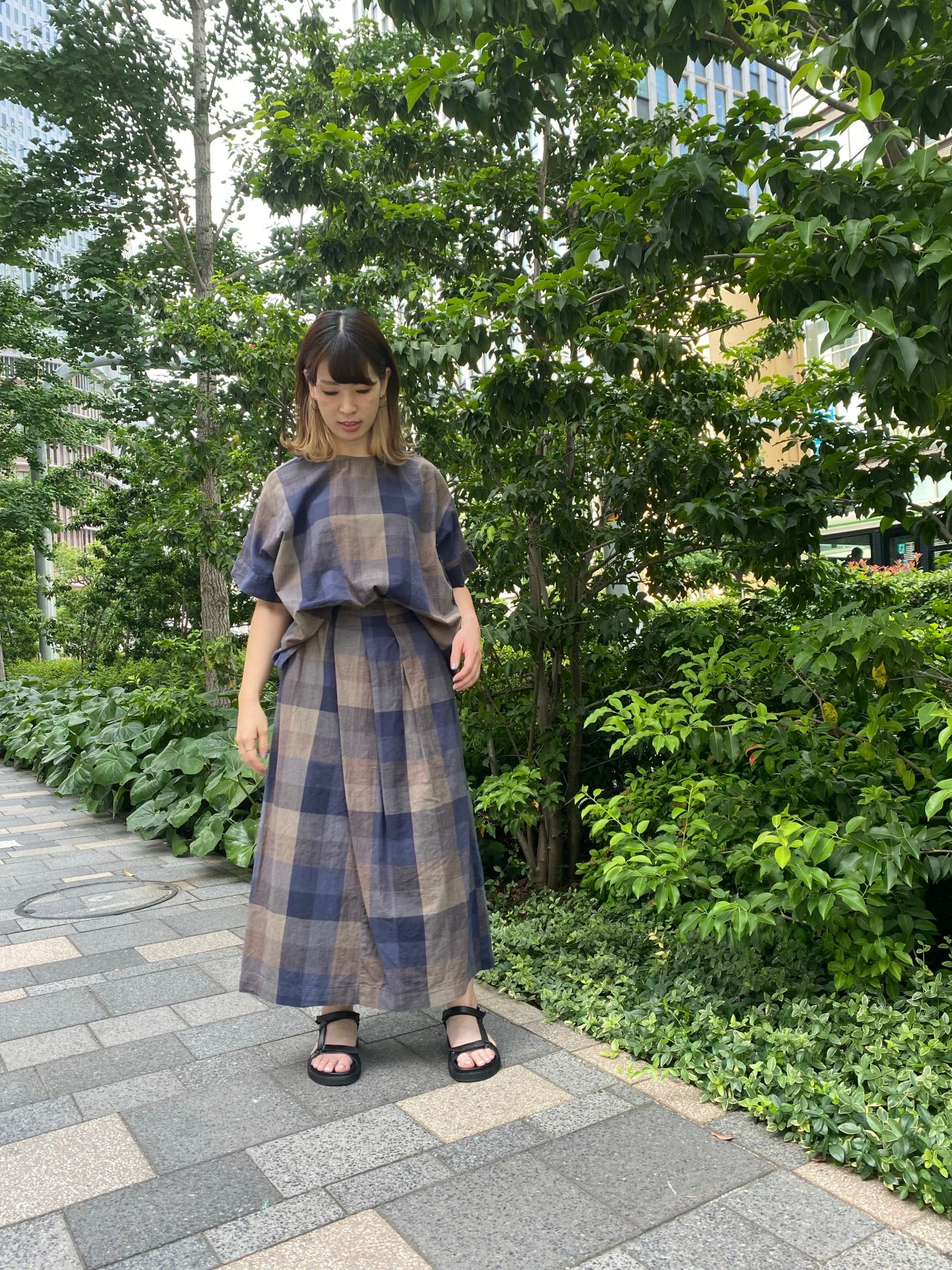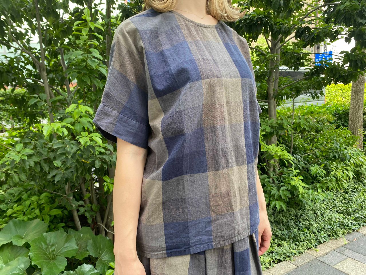 ブラウスは風通しのよいゆったりとしたシルエットですが、だらっと見えないよう襟ぐりは首に沿う小さめのデザインにしてあります。