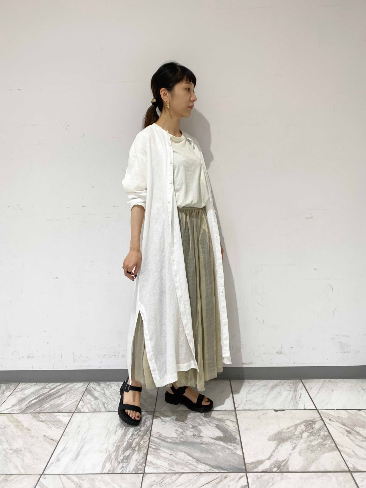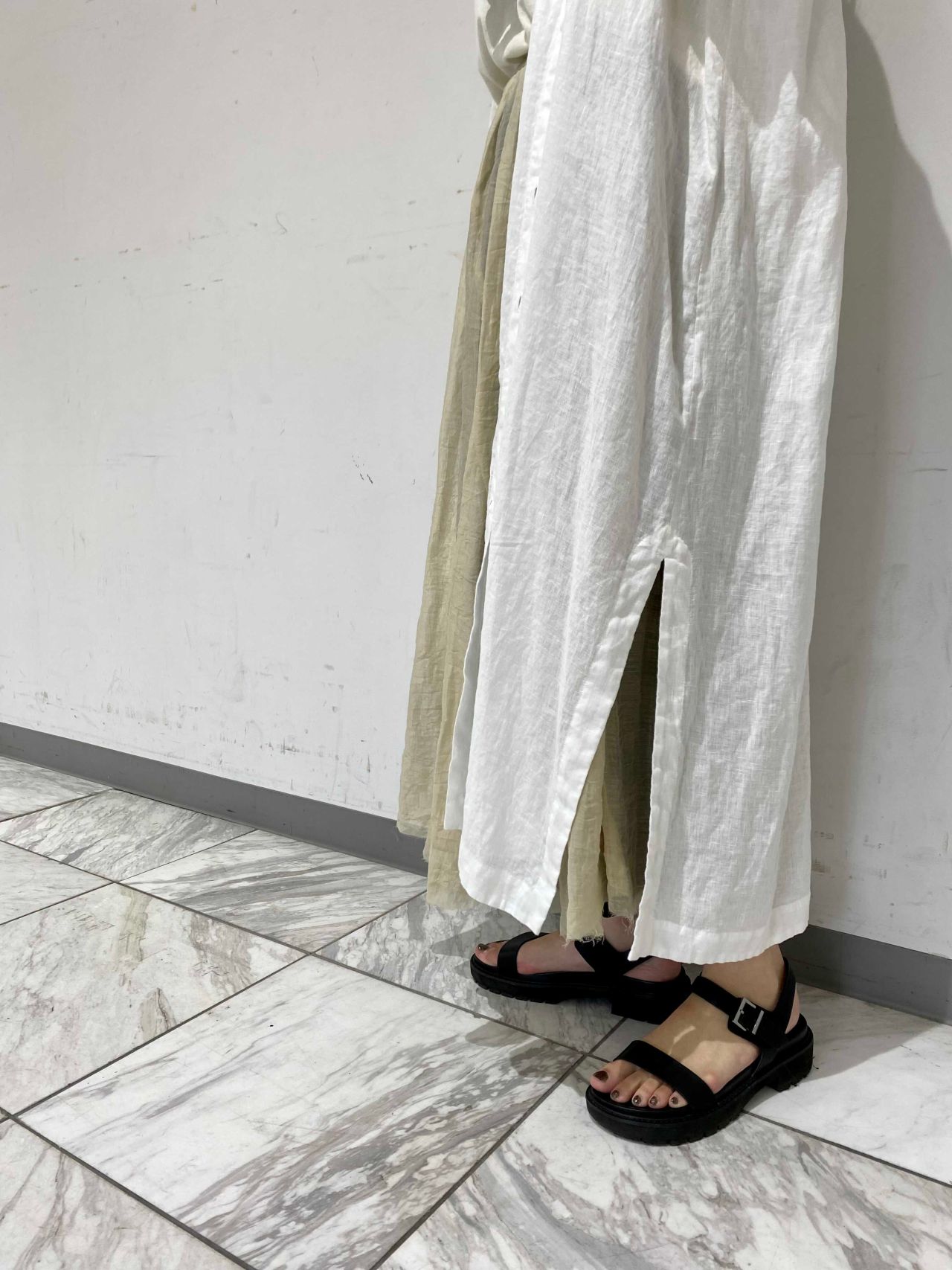 長めのスリットを生かして、