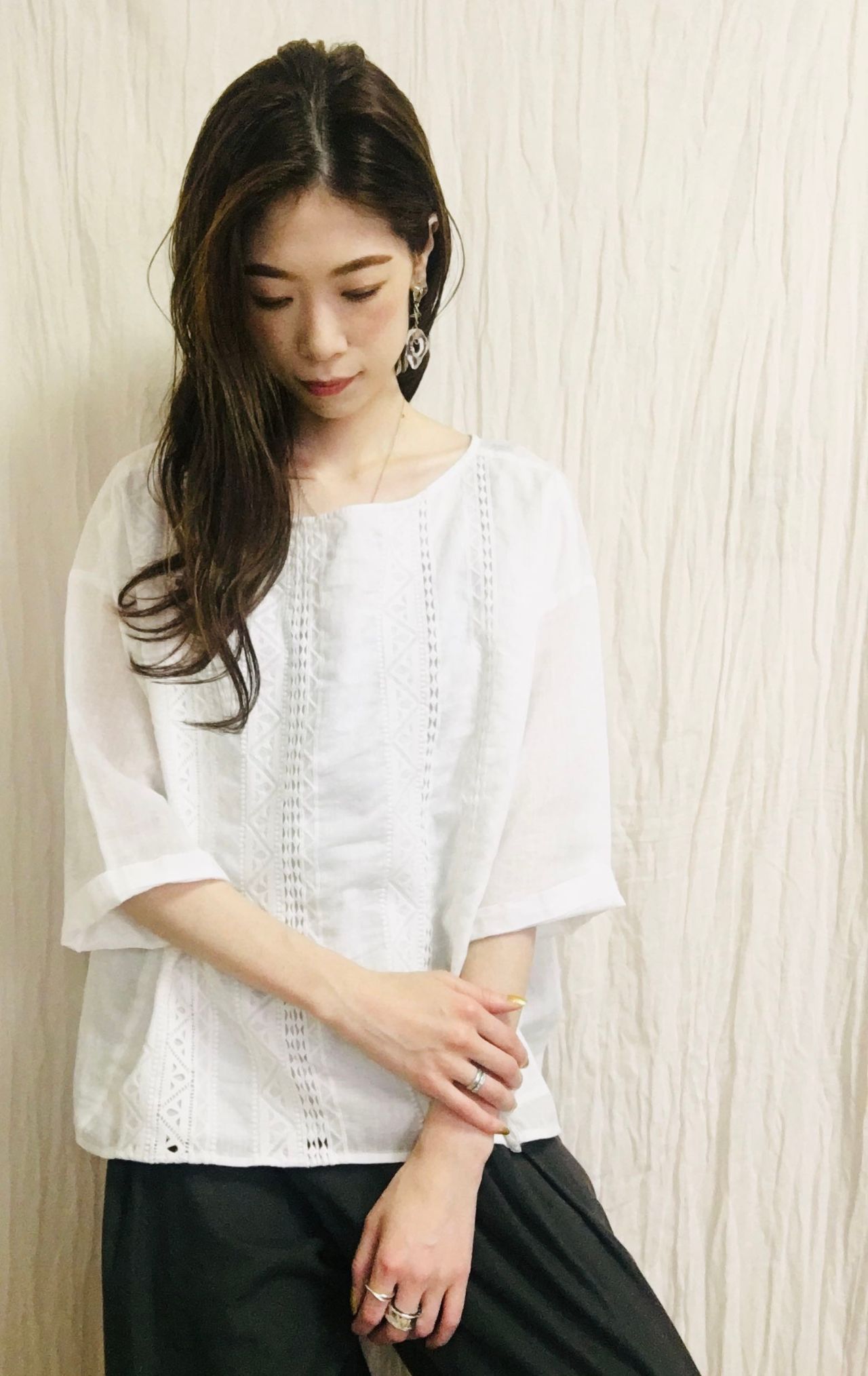 こちらのブラウスを着て、夏を乗り切りましょう。