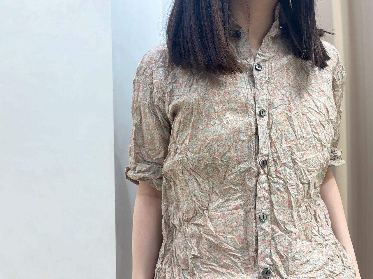 プリントの上から製品染めを施し、ほんのりと色味を感じる一枚。
